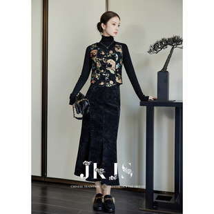 JAMUUS复古羊羔毛皮毛一体翻领外套麂皮绒保暖上衣 毛呢半身裙