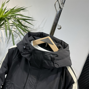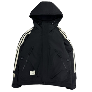 帅气白鸭绒外套 潮流百搭防风保暖上衣时尚 冬季 条纹连帽羽绒服男士