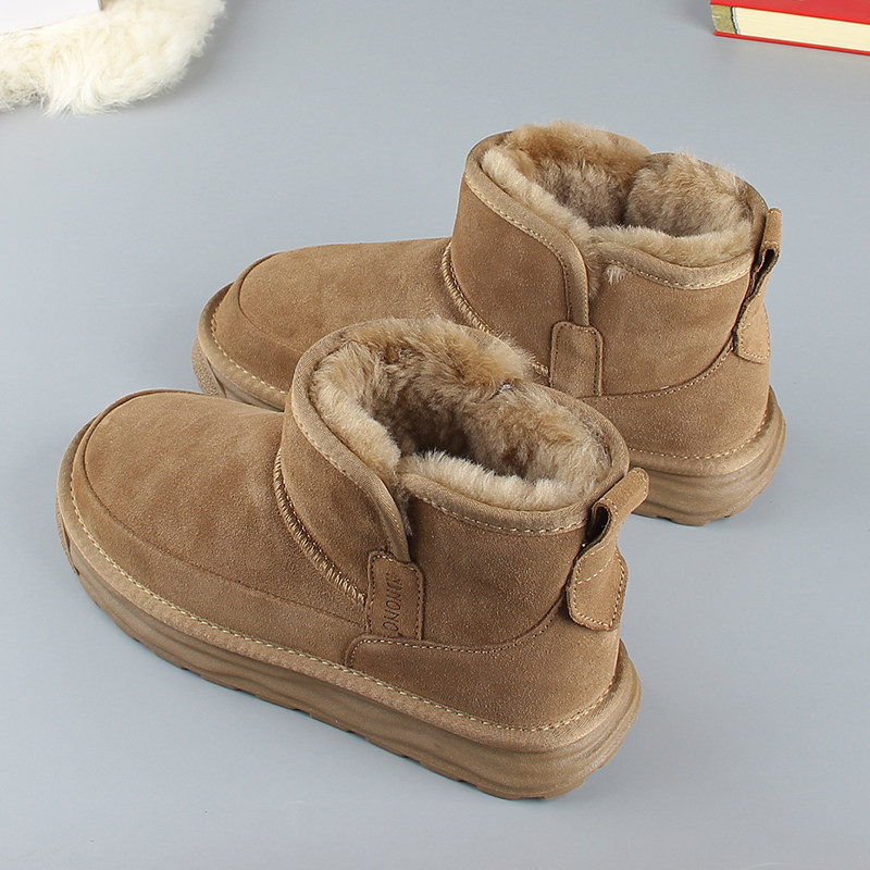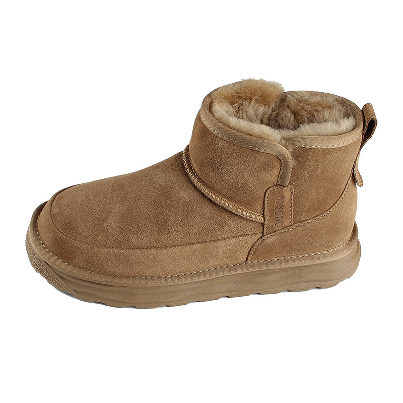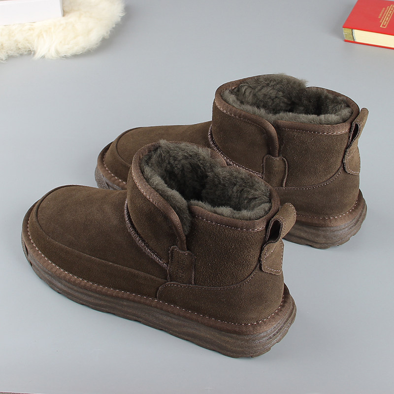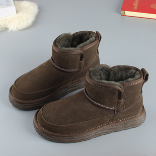 皮毛一体防滑厚底东北保暖短筒大棉鞋 全羊毛男士 雪地靴2025冬新款