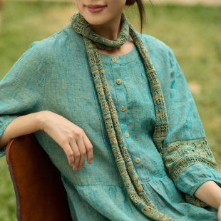 无色无味伊甸园夏季 民族风裙子宽松显瘦亚麻气质提花连衣裙女 新款