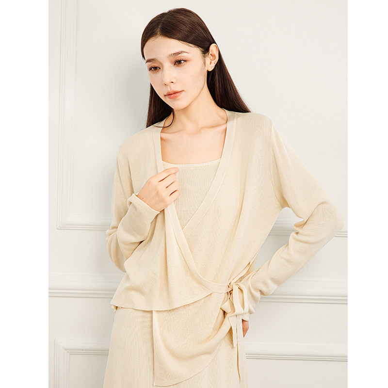 系带不规则衣摆天丝针织开衫 469 春冬 兰 外套611 100莱赛尔