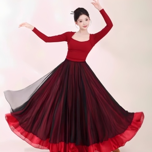 出租舞蹈演出服古典舞大摆裙中国风扇子舞万疆舞表演服装 租赁女
