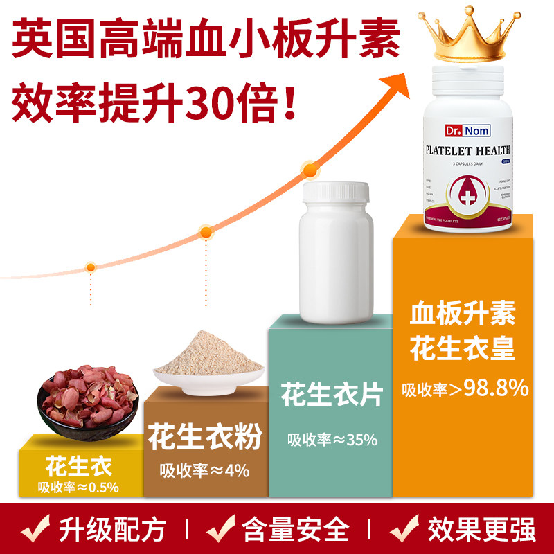 drnom英国进口花生衣红皮血小板五红汤提升低吃什么生成素胶囊