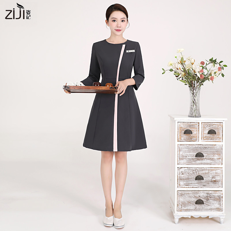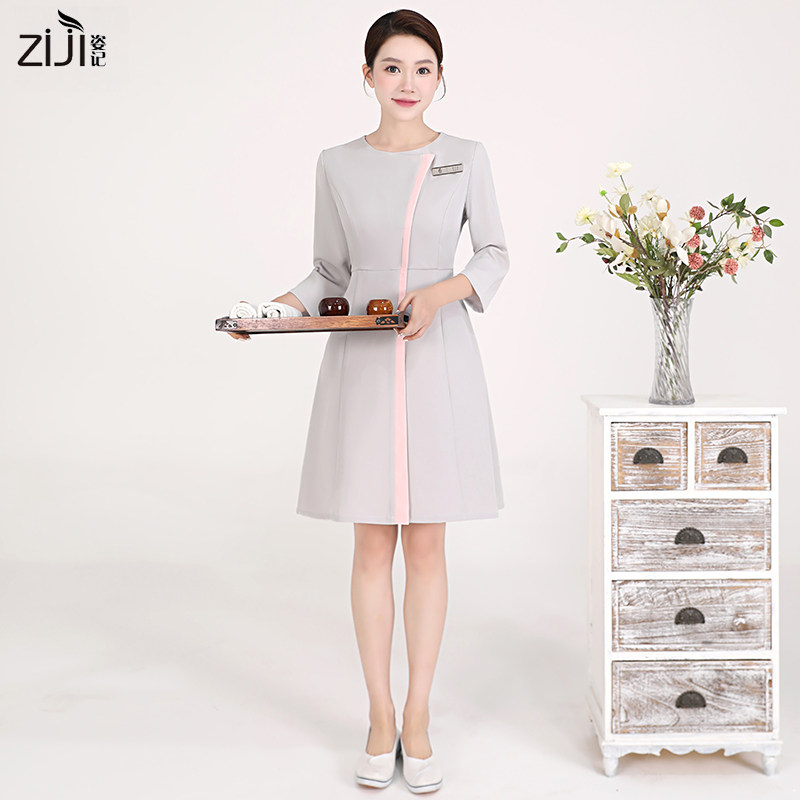 新款 美容师工作服连衣裙技师足疗气质秋冬美容院工作服女高端套装