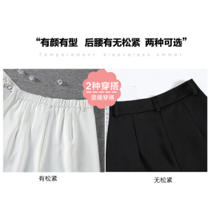 裤 冰丝阔腿裤 子女夏薄款 小个子窄版 潮 高级垂感直筒拖地裤 白色西装