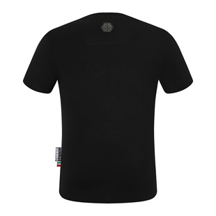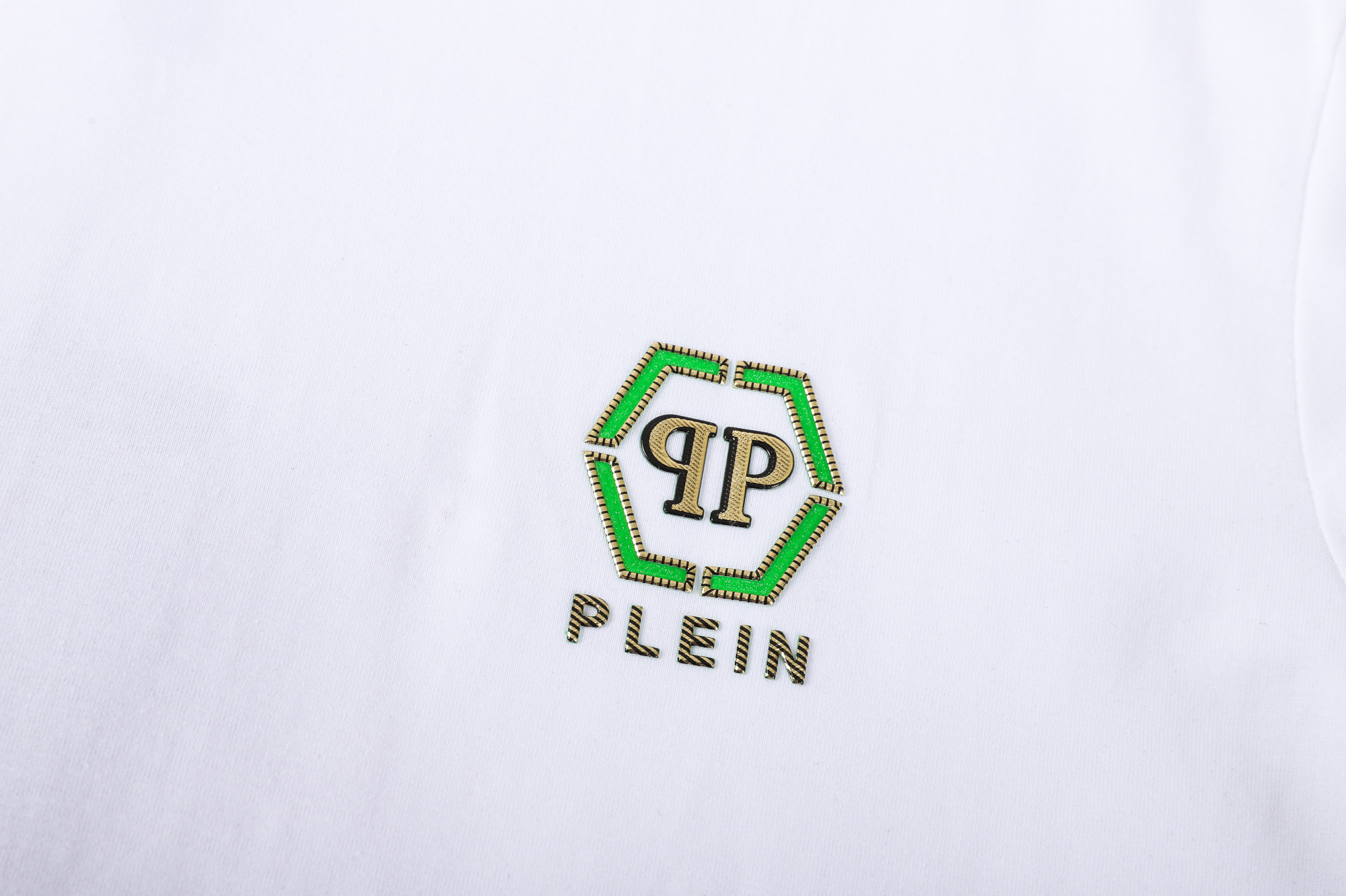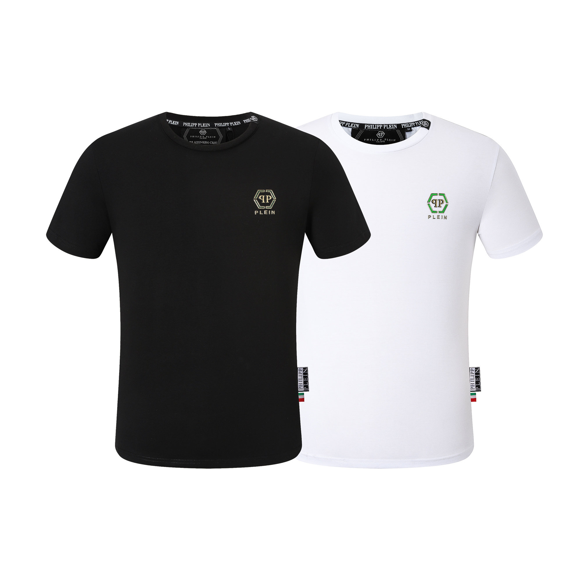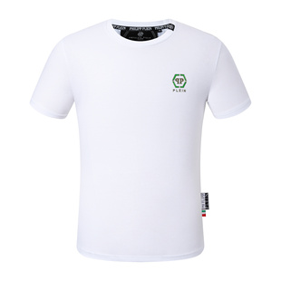 简约短袖 修身 黑白配色菲利普T恤纯棉 新潮牌qp胸前印章pp男装 夏季