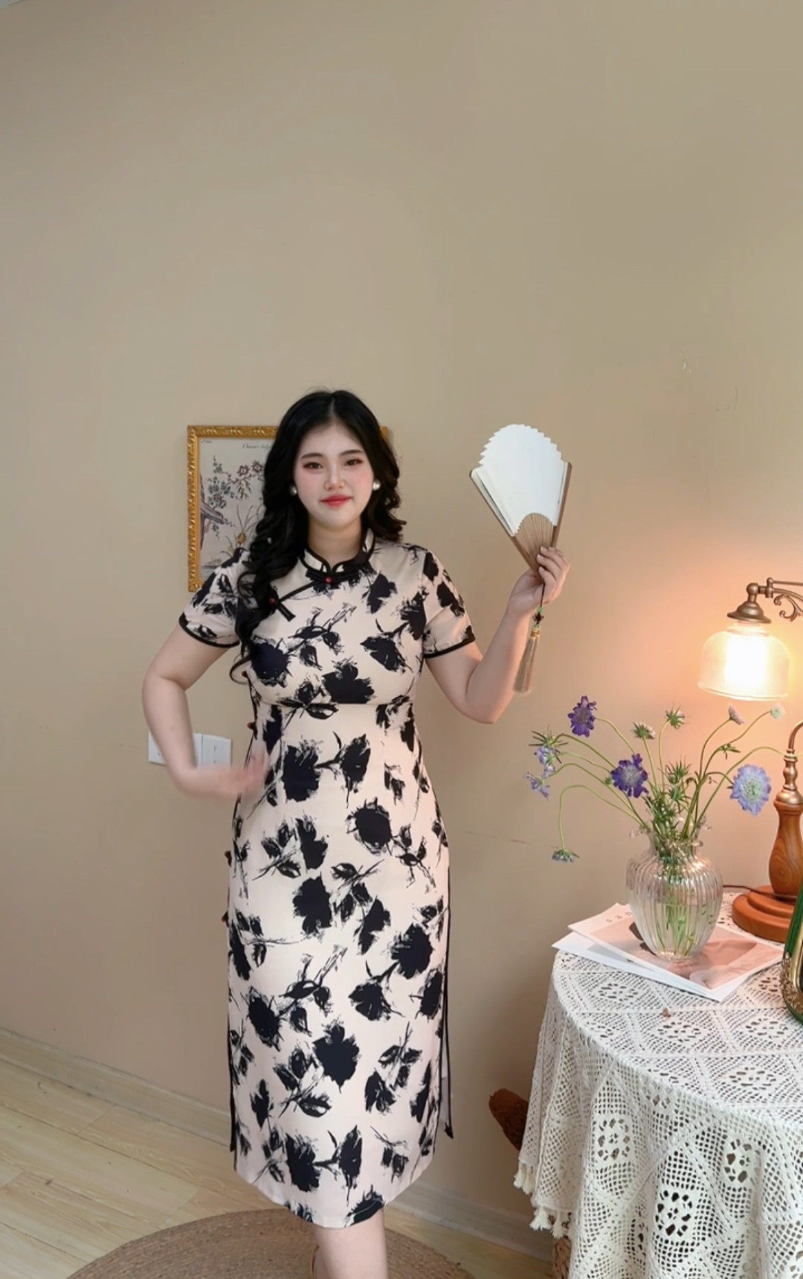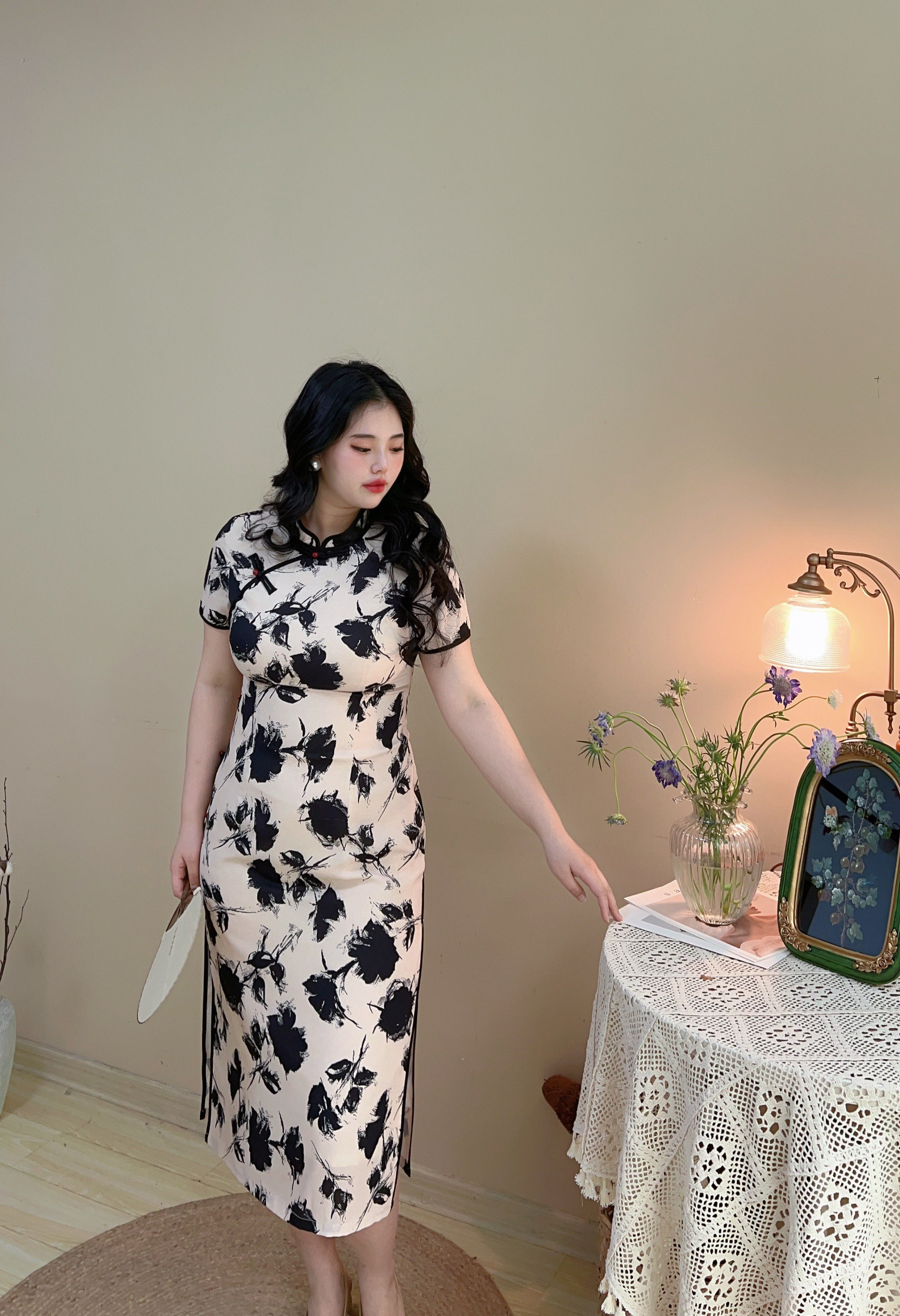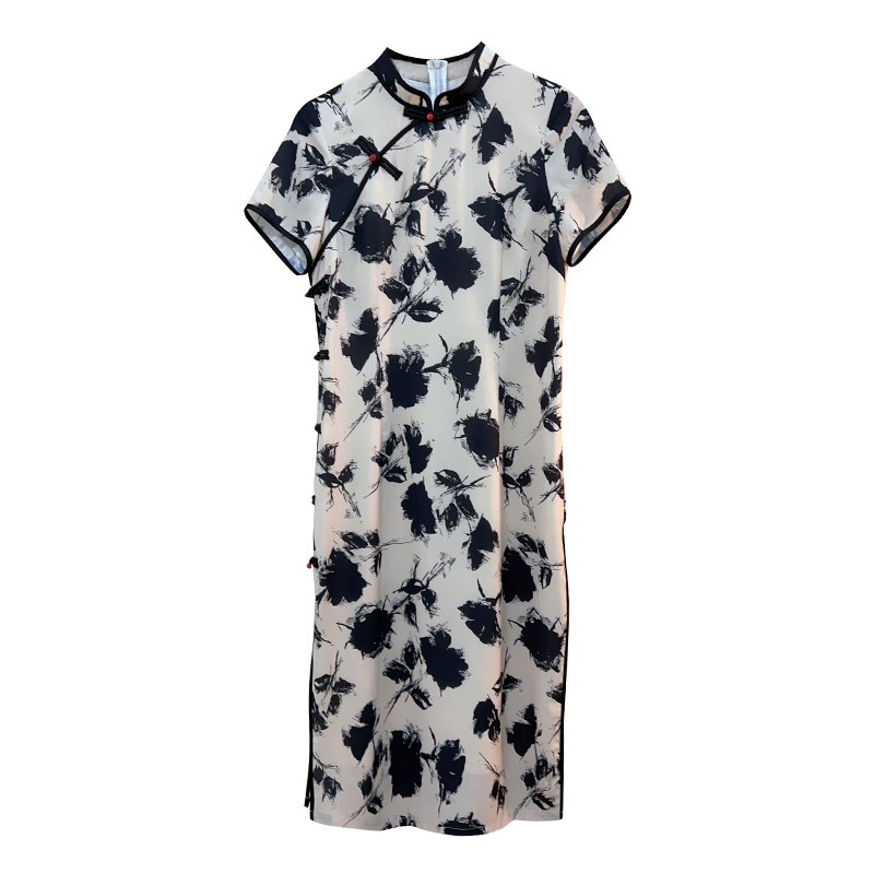 胖mm显瘦气质新中式 大码 国风旗袍连衣裙200斤夏 自制款 黑玫瑰