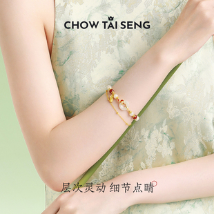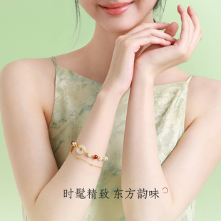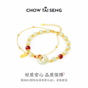 周大生锦鲤上上签和田玉手链女纯银手串玛瑙手饰本命年礼物送女生