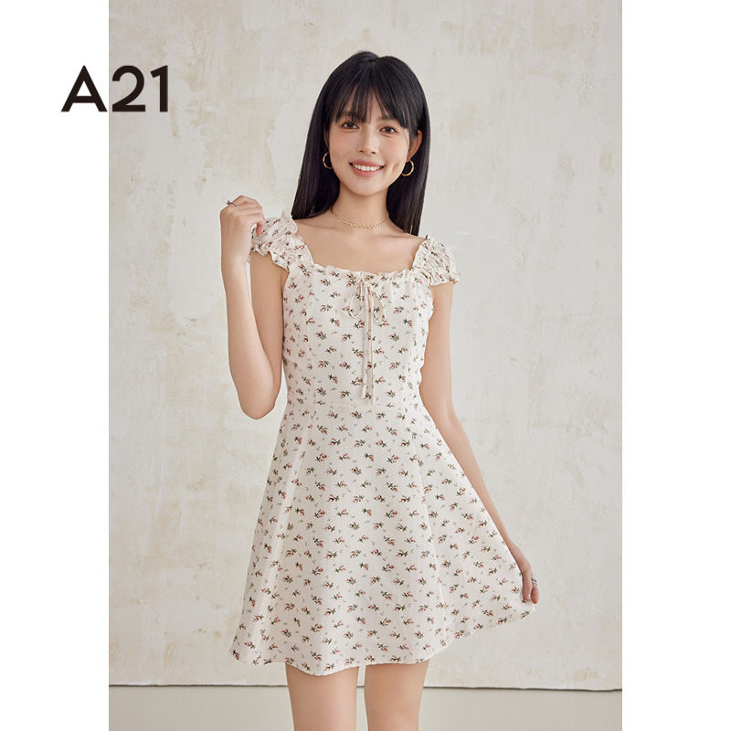 A21女装 裙吊带碎花裙小性感包臀裙 修腰休闲连衣裙短裙娃娃领包袖