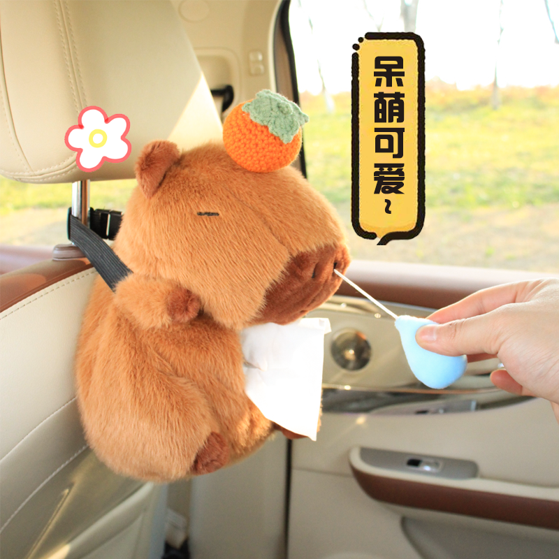 鼻涕卡皮巴拉车载纸巾套座椅后背挂式 抽纸盒餐巾卡通可爱女汽车用