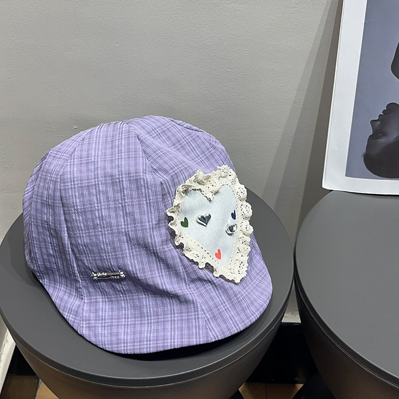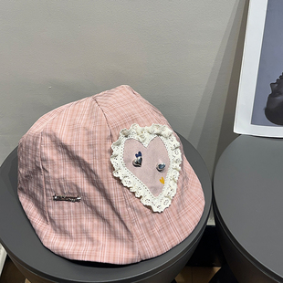 日系格子云朵报童帽女春夏速干百搭大檐防晒显脸小画家前进帽子潮