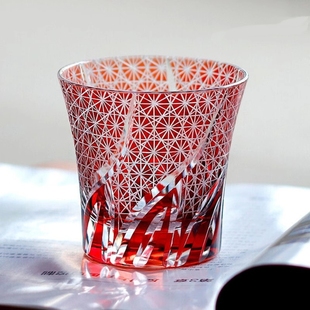 红色冰块玻璃杯小众设计轻奢高档喝水杯高级感威士忌酒杯洋酒杯