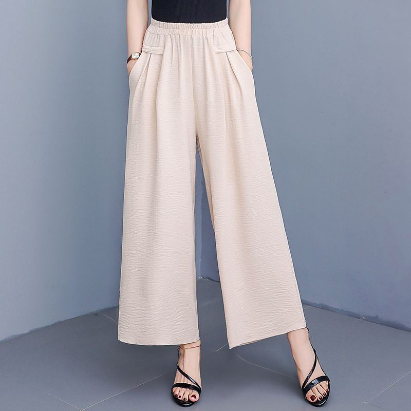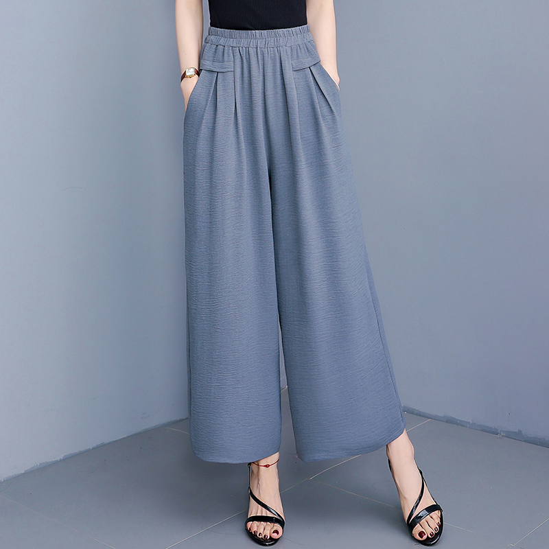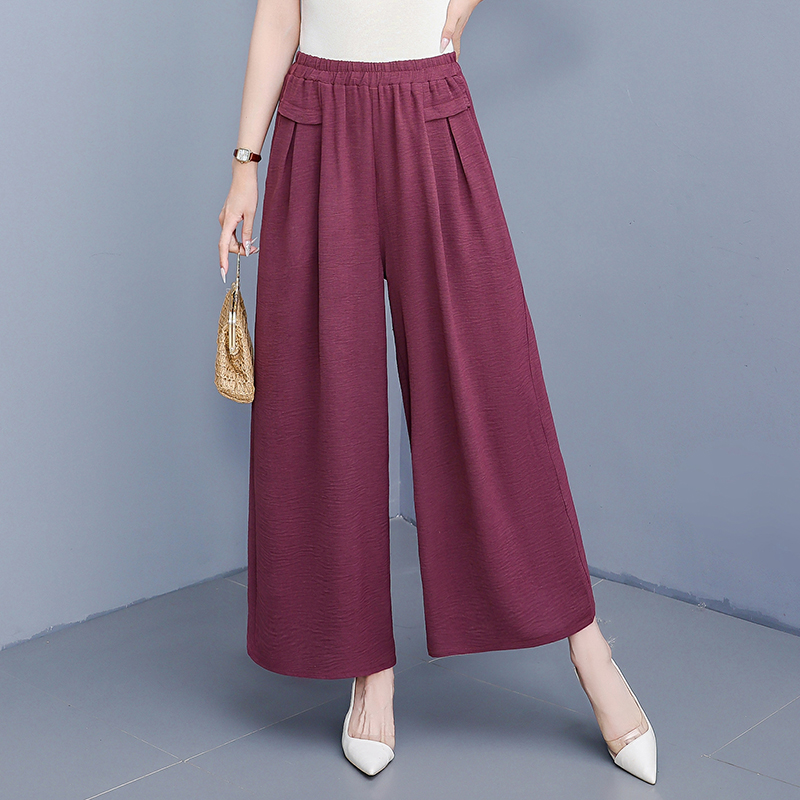 休闲裤 中老年妈妈夏季 女士九分有垂感大脚裤 直筒香云缎阔腿裤 薄款