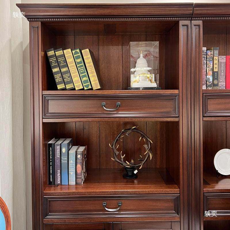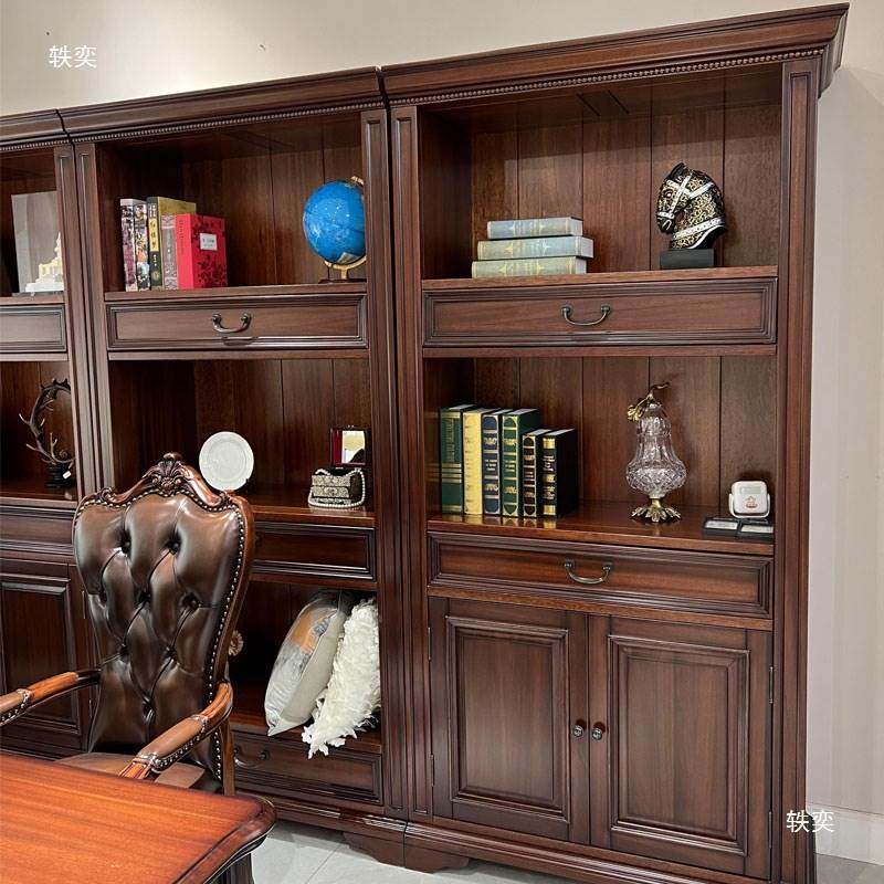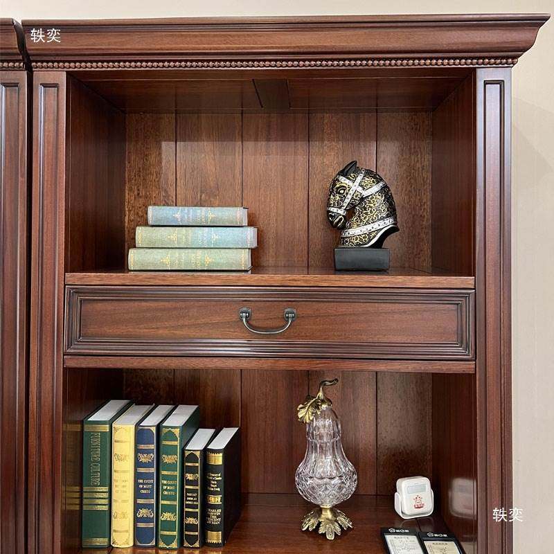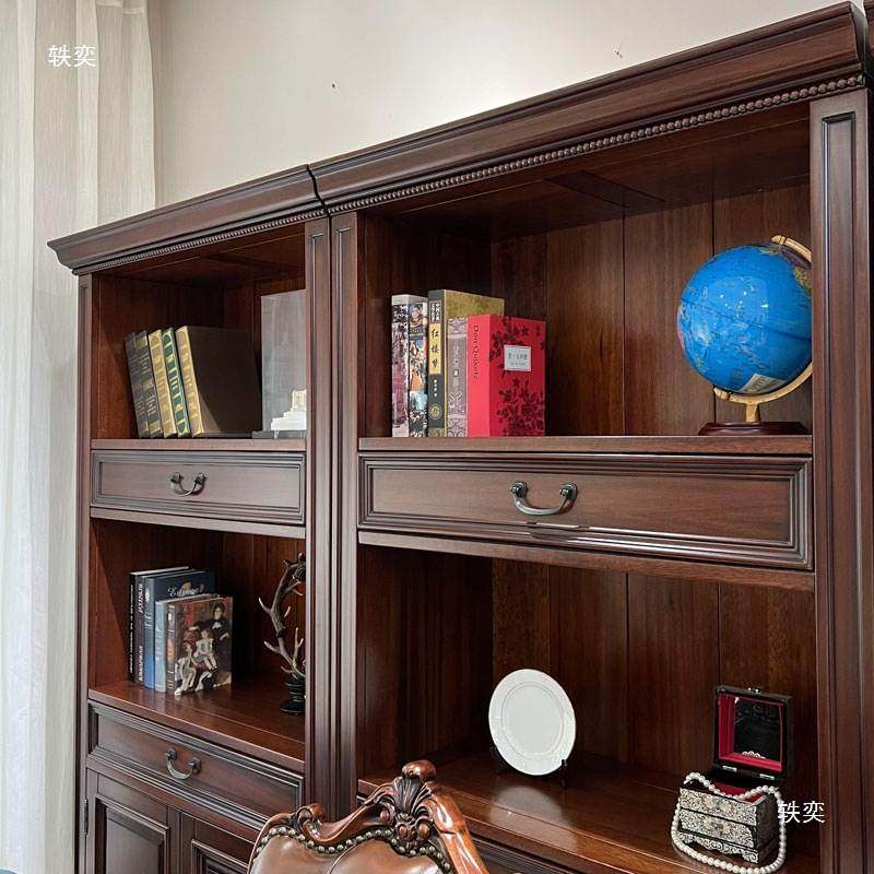 美式 复古书柜实木书架置物架黑胡桃木展示收纳抽屉柜组合书房家具