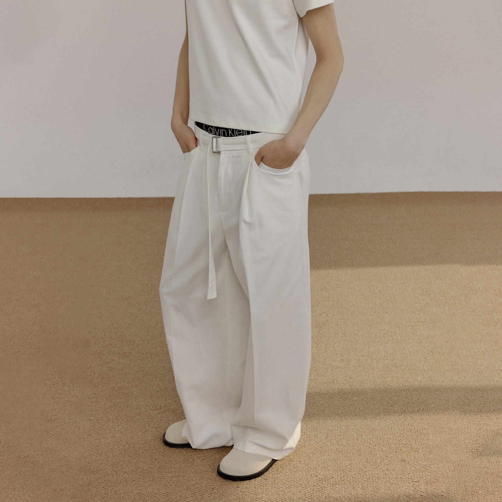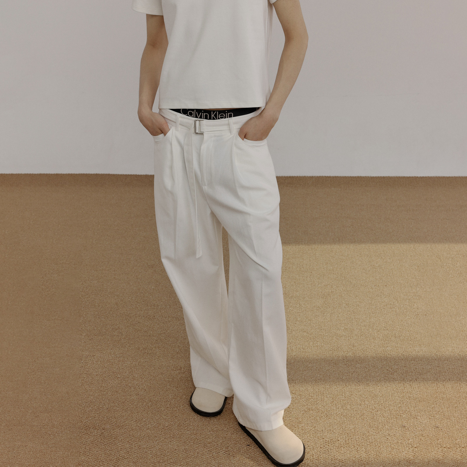 同时松弛无需多言 不粘腿 COLN用腰带双口袋直筒牛仔裤 迎接夏日