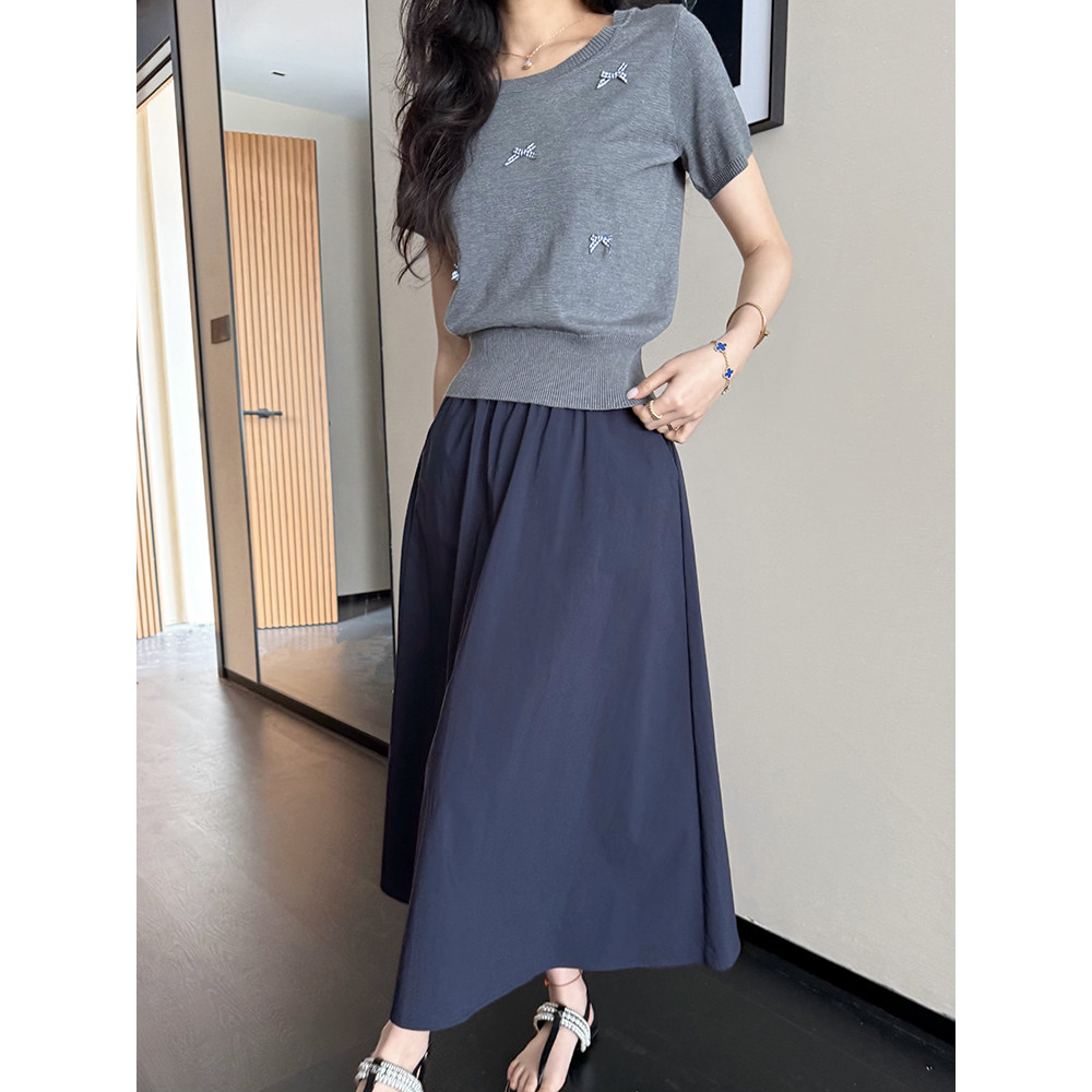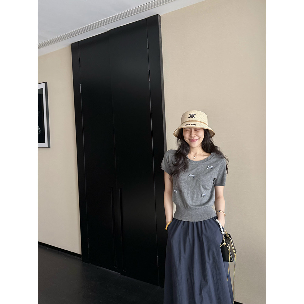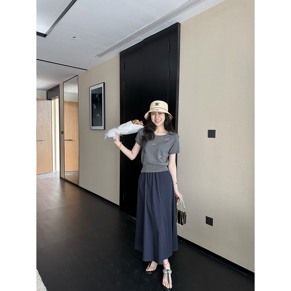 高腰垂感口袋半裙 韩系立体蝴蝶结遮肉短袖 张阿星 夏屿日记