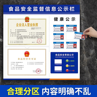 营业执照框架挂墙食品安全信息公示栏健康许可证卫生放餐饮展示板