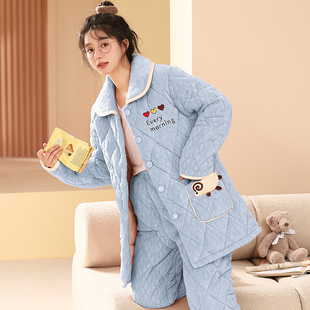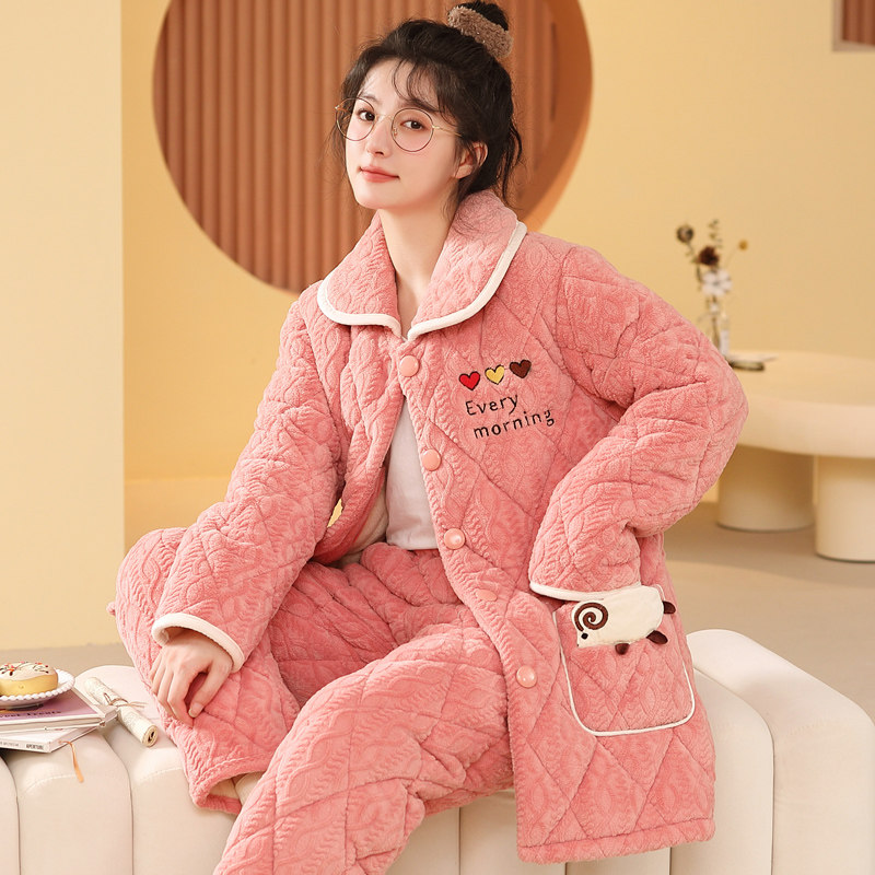 大码 中老年开衫 家居服 女士加绒法兰绒长袖 秋冬加厚珊瑚绒睡衣套装