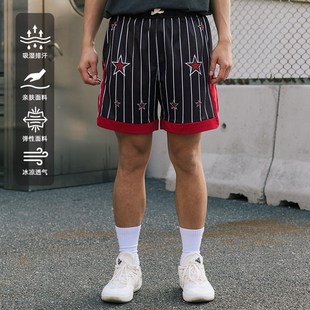 LUSHISI星蓝主题运动复古条纹篮球美式 街头潮流训练跑步五分短裤