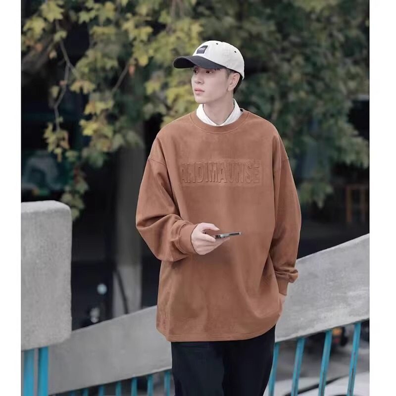 2025春秋青少年美式 专柜套头 潮牌麂皮绒钢印休闲卫衣 精品