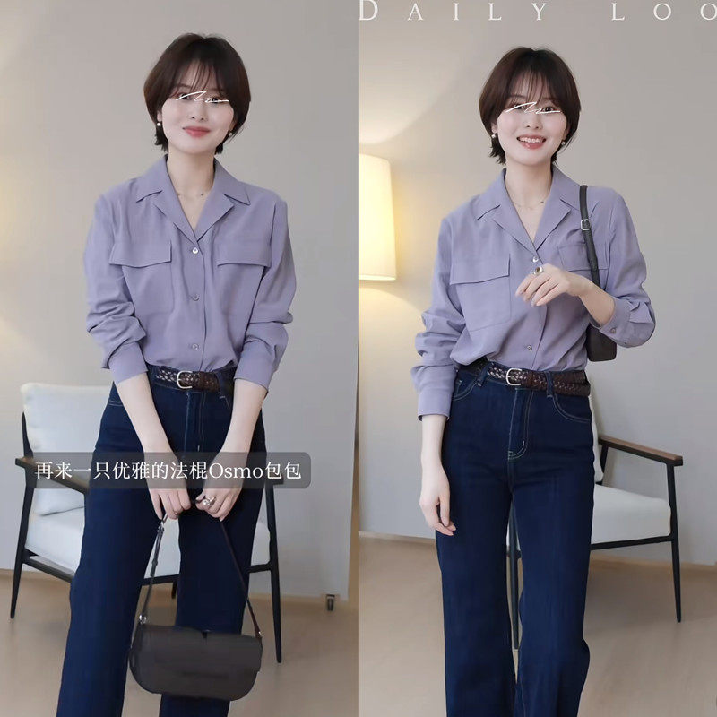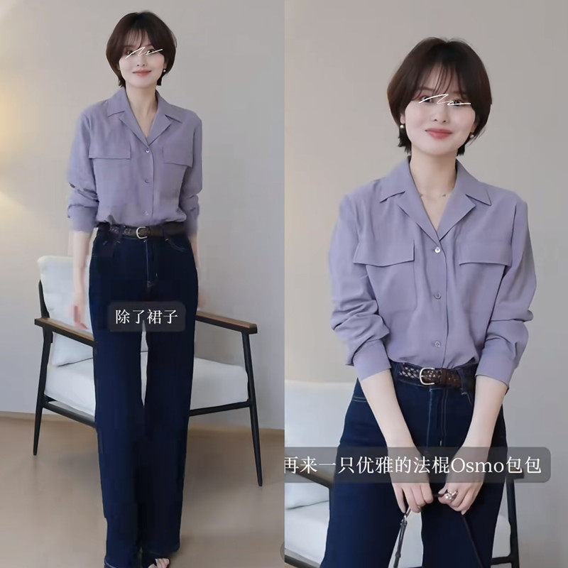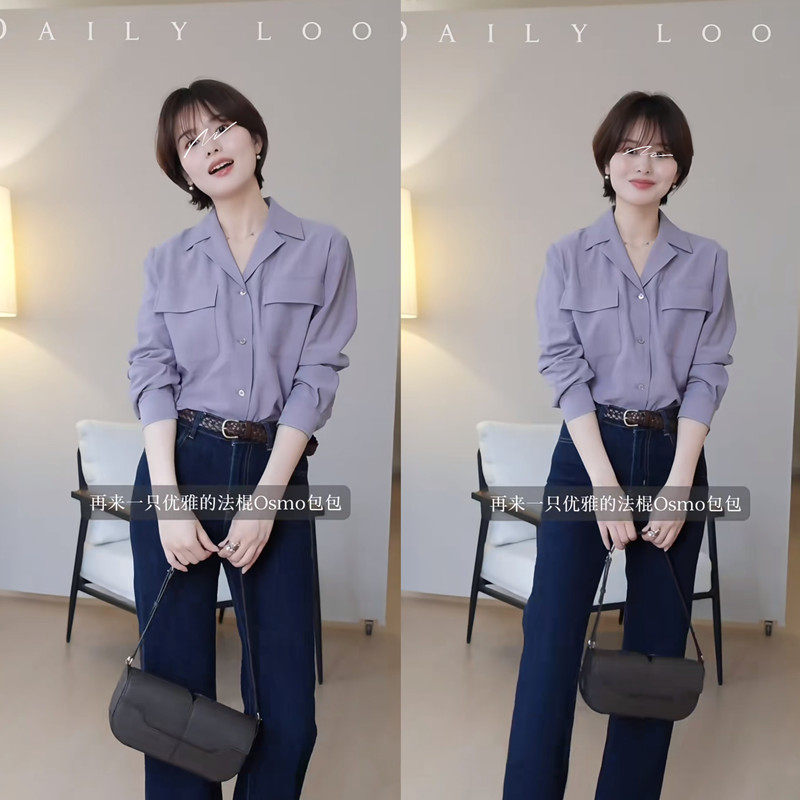 女通勤气质职场上衣小众温柔显白 衬衫 「春日诗」芋泥紫西装 领长袖