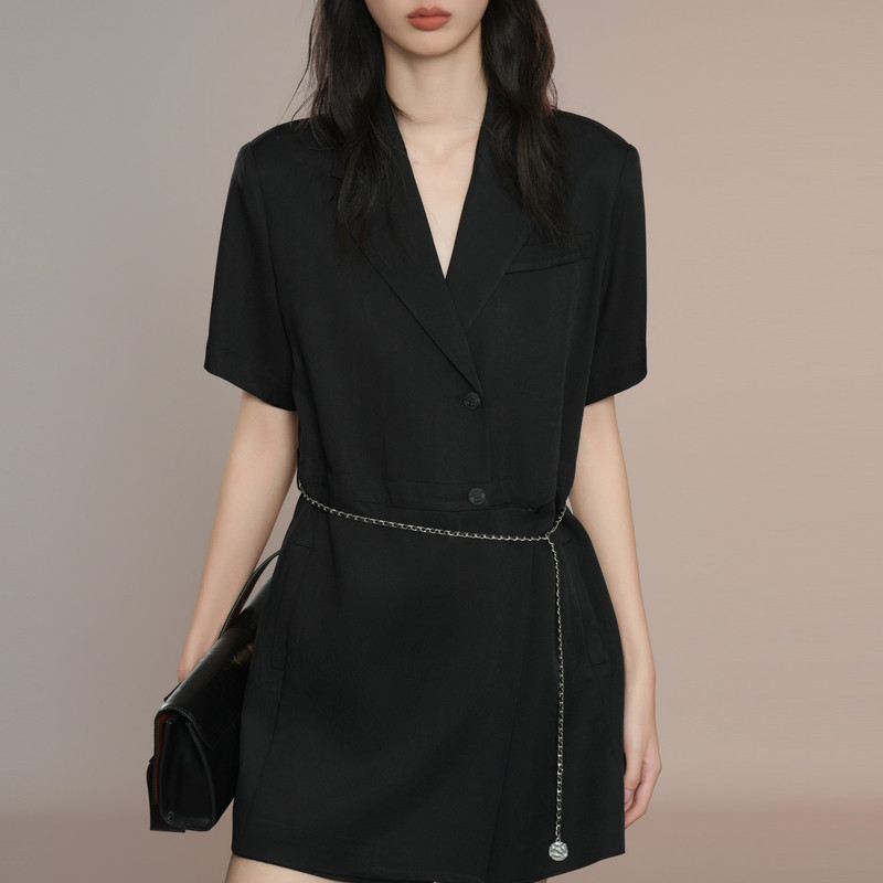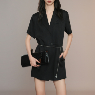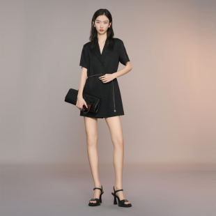 XG雪歌醋纤黑色西装 气质通勤短裙XK204028A290 连衣裙女2025夏新款