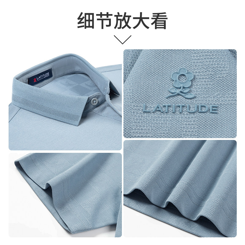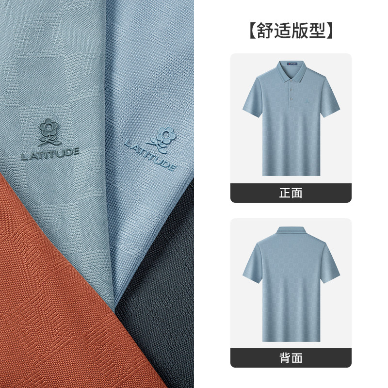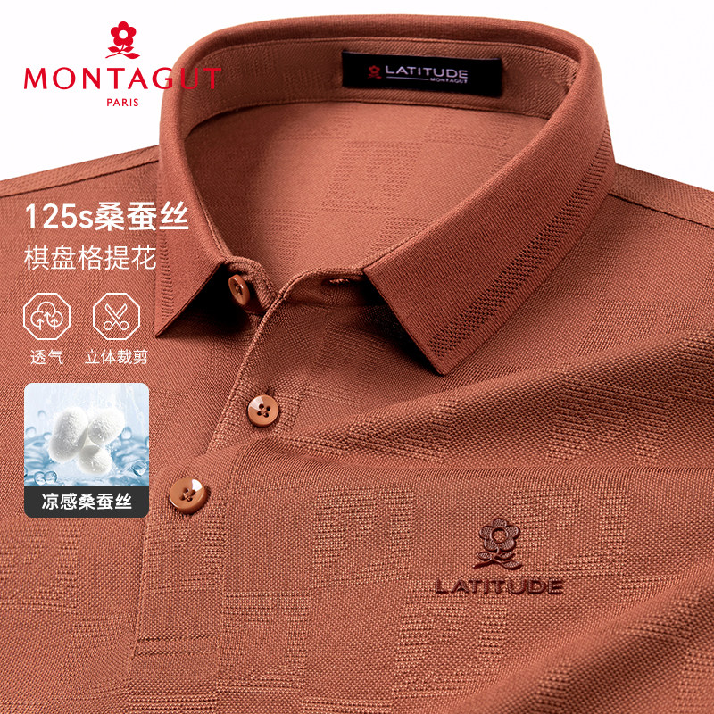 Polo衫 男短袖 梦特娇夏季 翻领轻奢棋盘格T恤凉感J 126S双股桑蚕丝