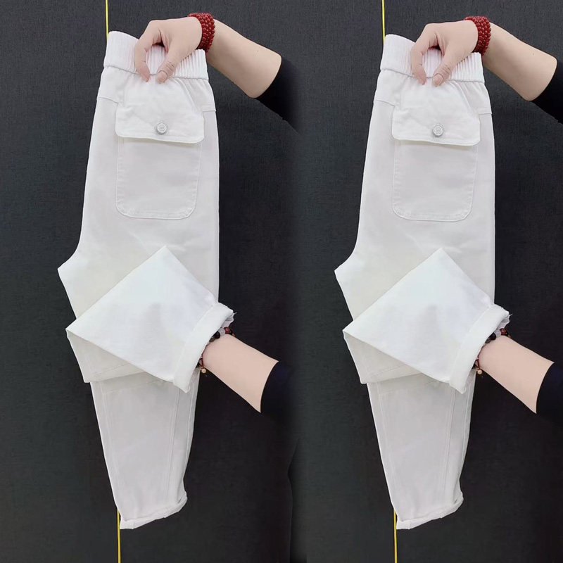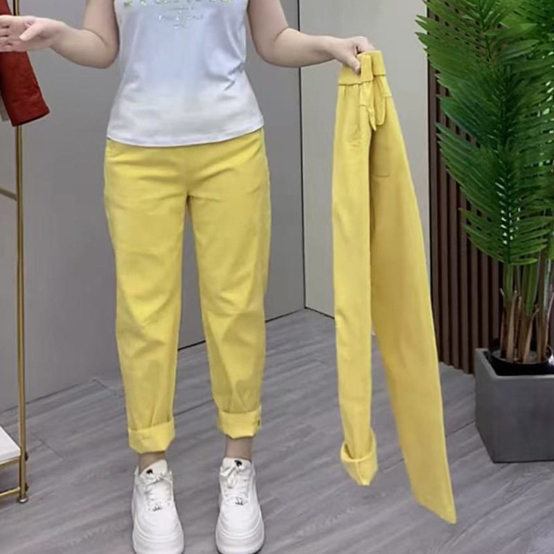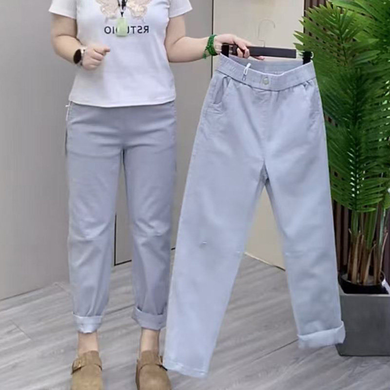 洋气百搭哈伦小脚萝卜裤 欧货水洗棉休闲裤 子女高腰宽松纯棉九分裤