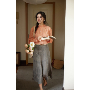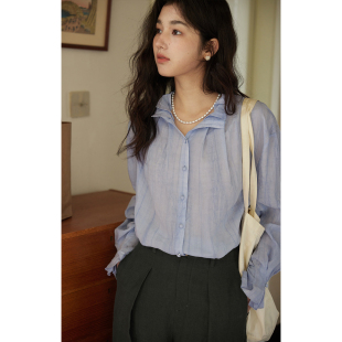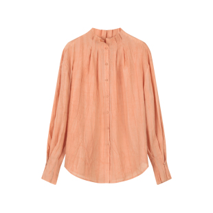 法式 宽松薄款 亚麻天丝木耳边立领衬衫 新款 上衣 女春季 solighter