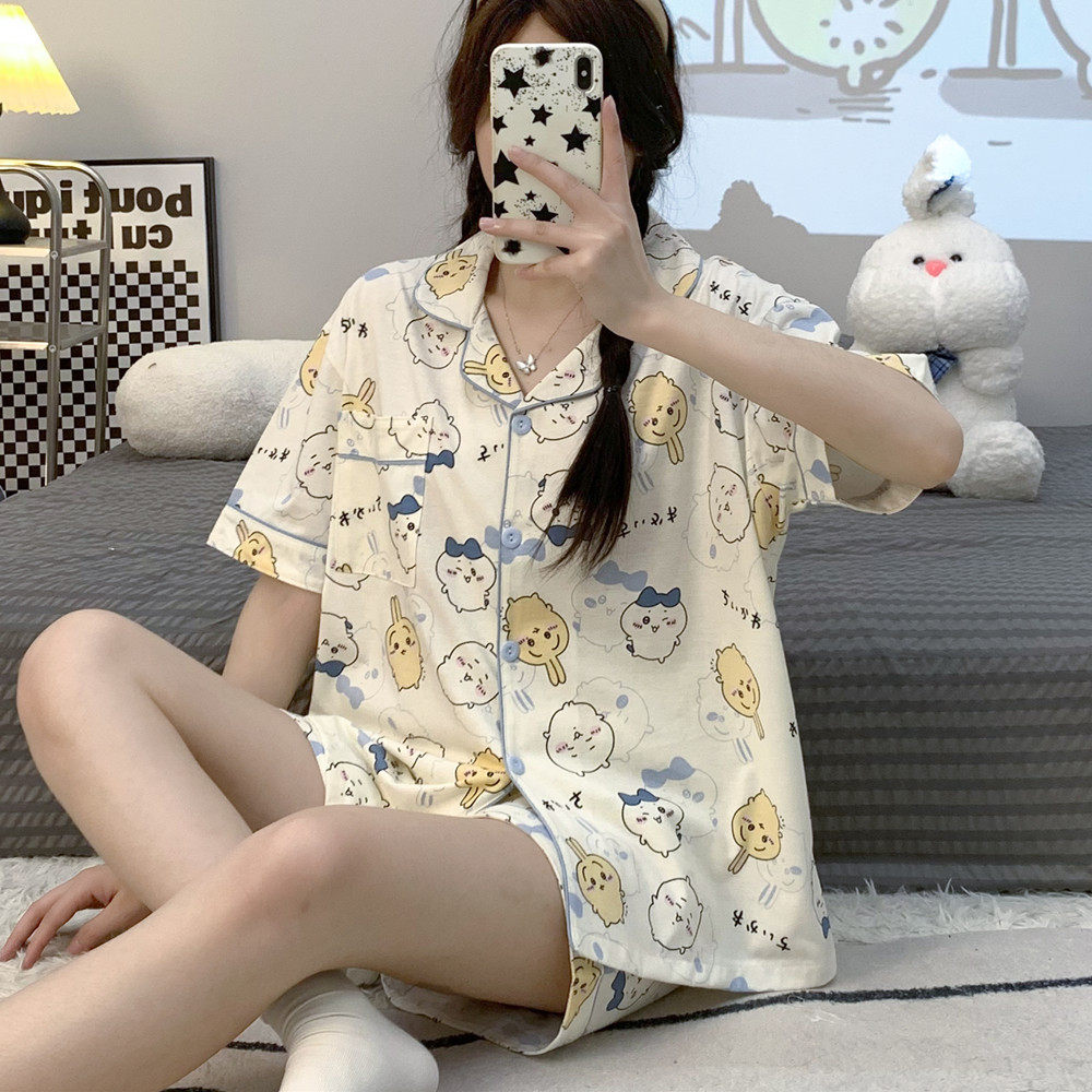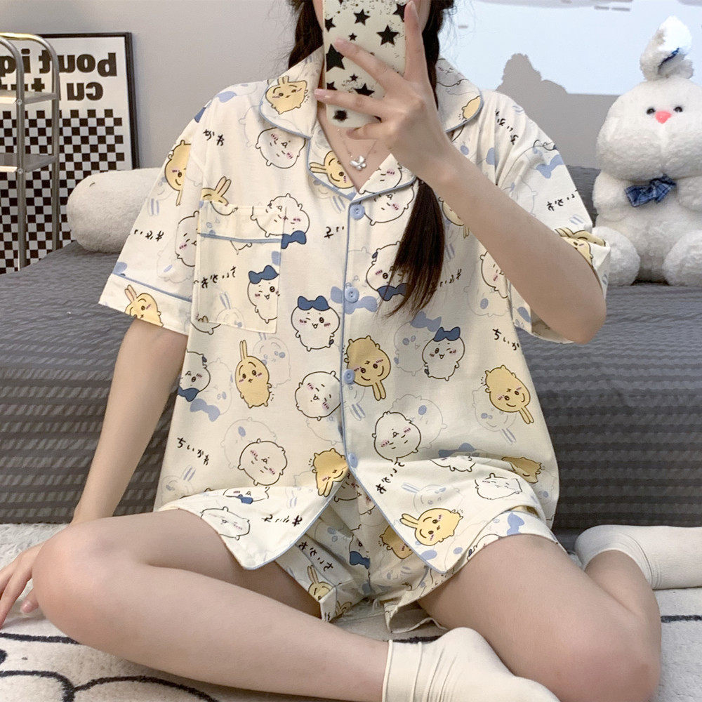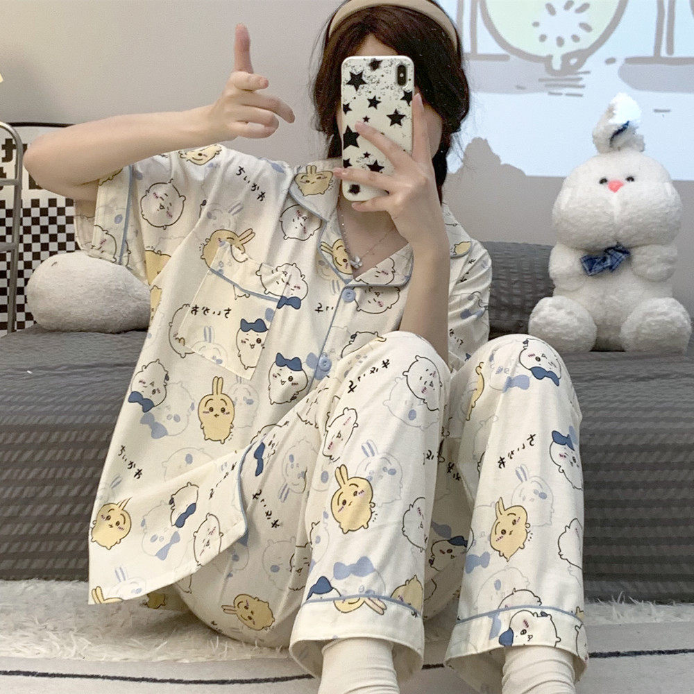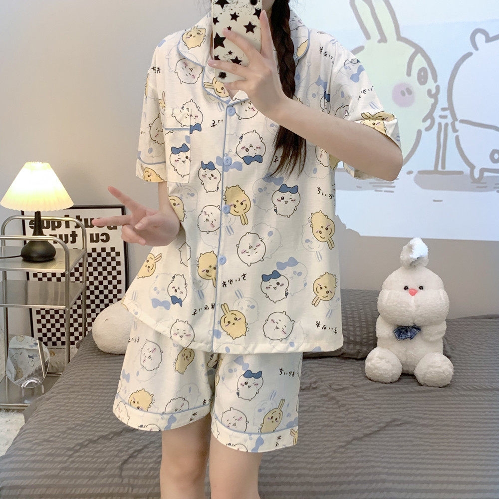夏天家居服套装 ins日系新款 可爱卡通学生宽松大码 短袖 睡衣女夏季