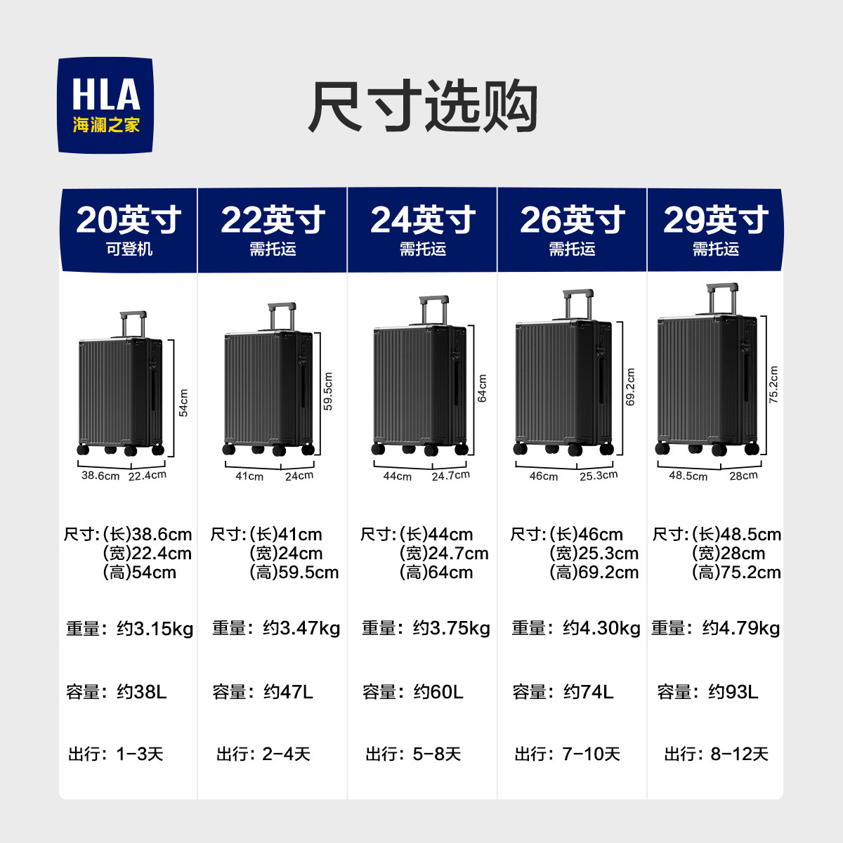 HLA 海澜之家大容量行李箱女学生20寸登机旅行拉杆箱24寸男26拉链