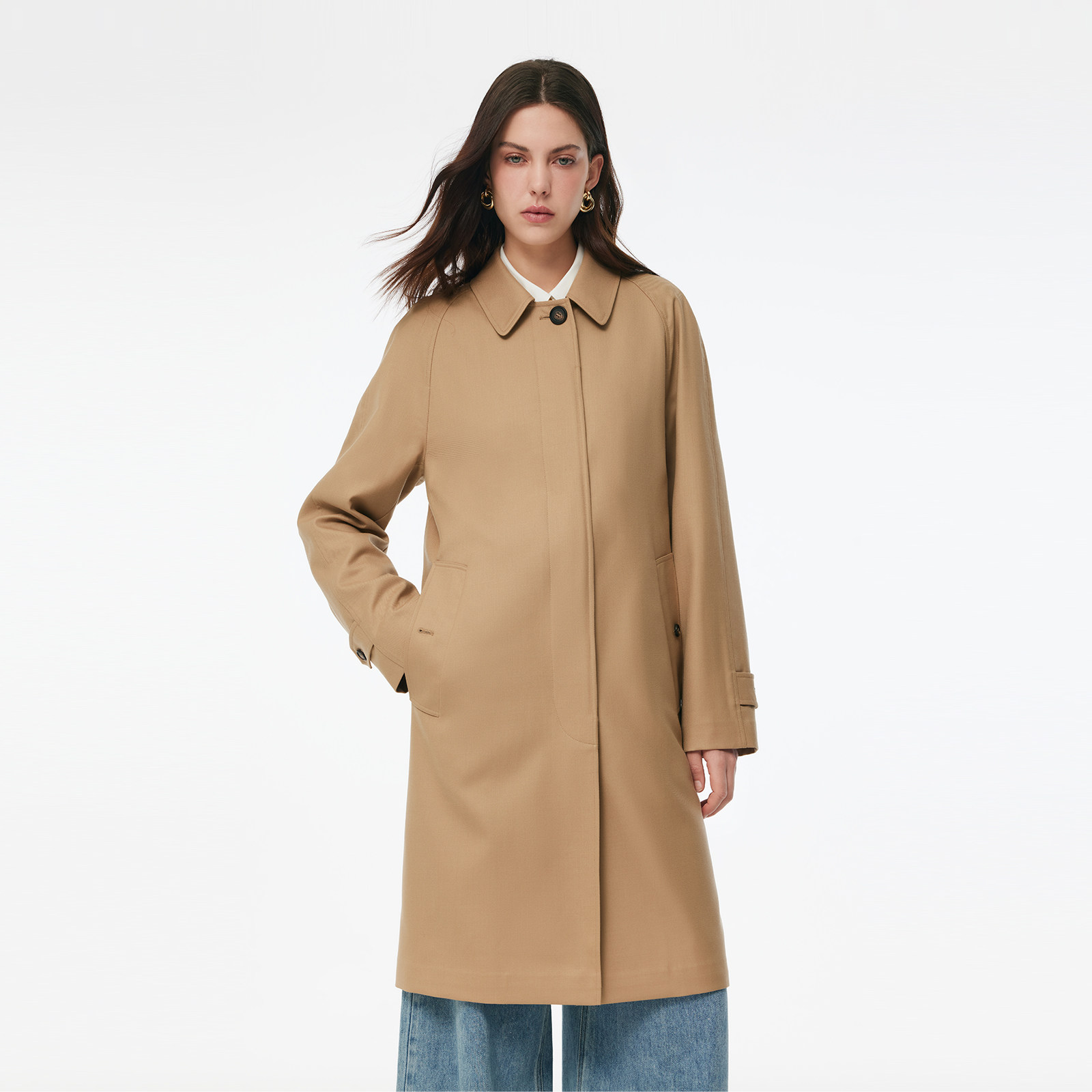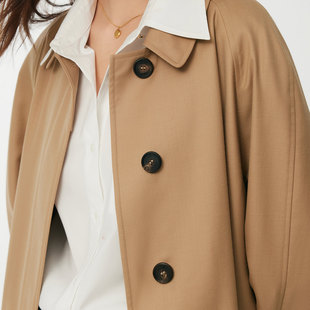 立领风衣外套 配腰带夹棉秋冬毛呢长款 PMET 多形态翻领毛呢大衣