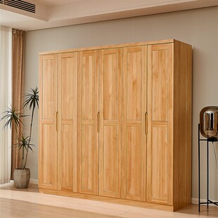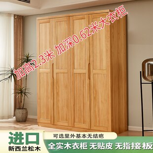 全实木衣柜松木平开门卧室加高2米3四五六门衣橱家用成人儿童收纳