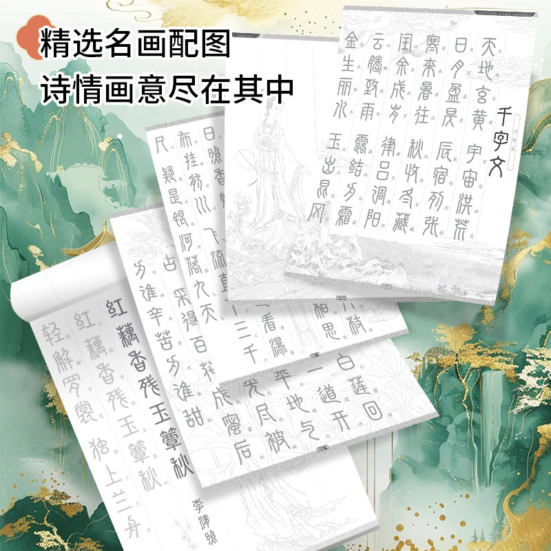 千字文 名碑名帖描红系列 曲 零基础儿童毛笔字入门临摹本 篆书毛笔字帖 小篆毛笔书法字帖 诗经 未词 唐诗 元 篆书系列控笔描摹本