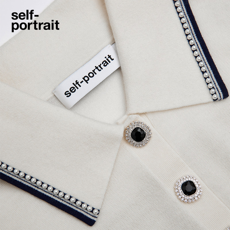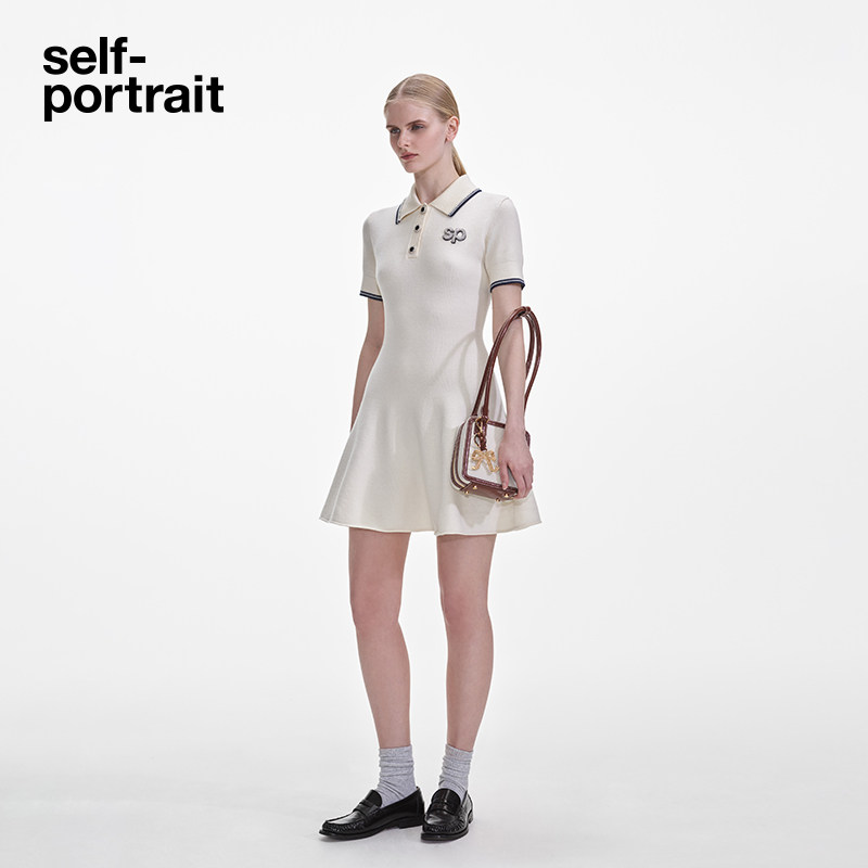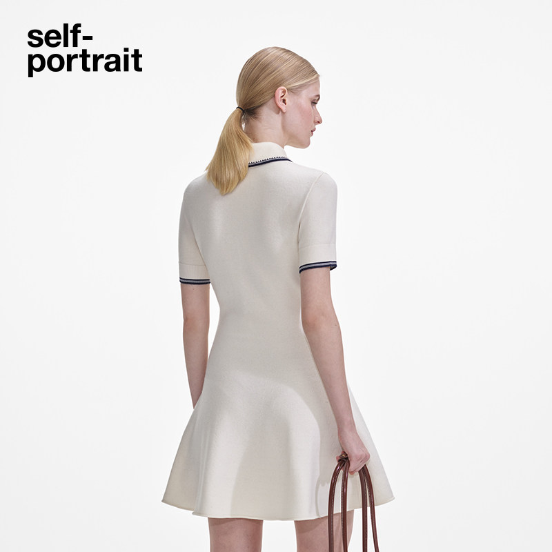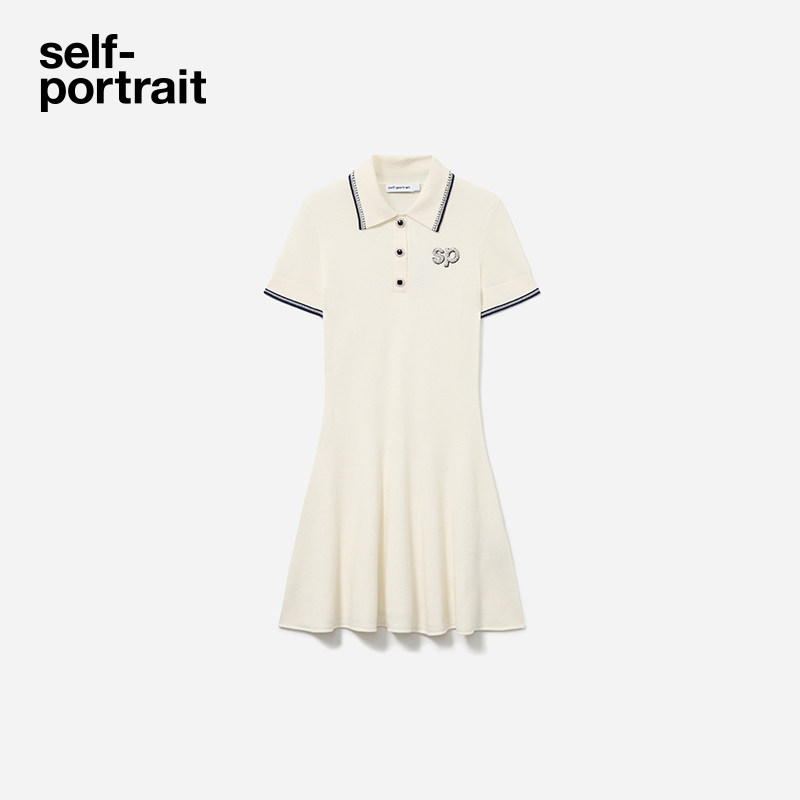 POLO领针织连衣裙 2025春夏白混色航海学院短袖 self portrait