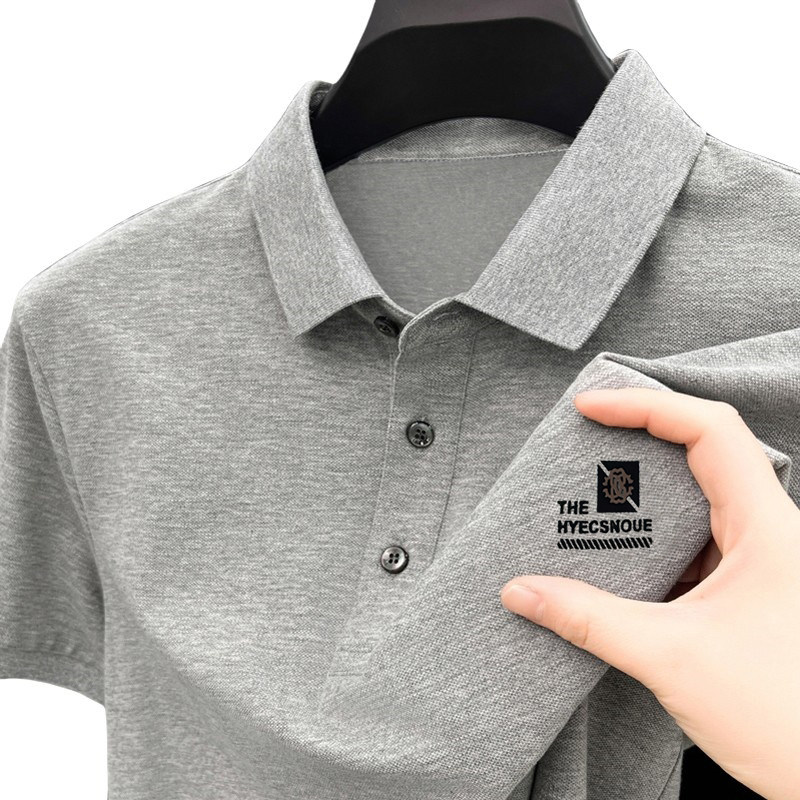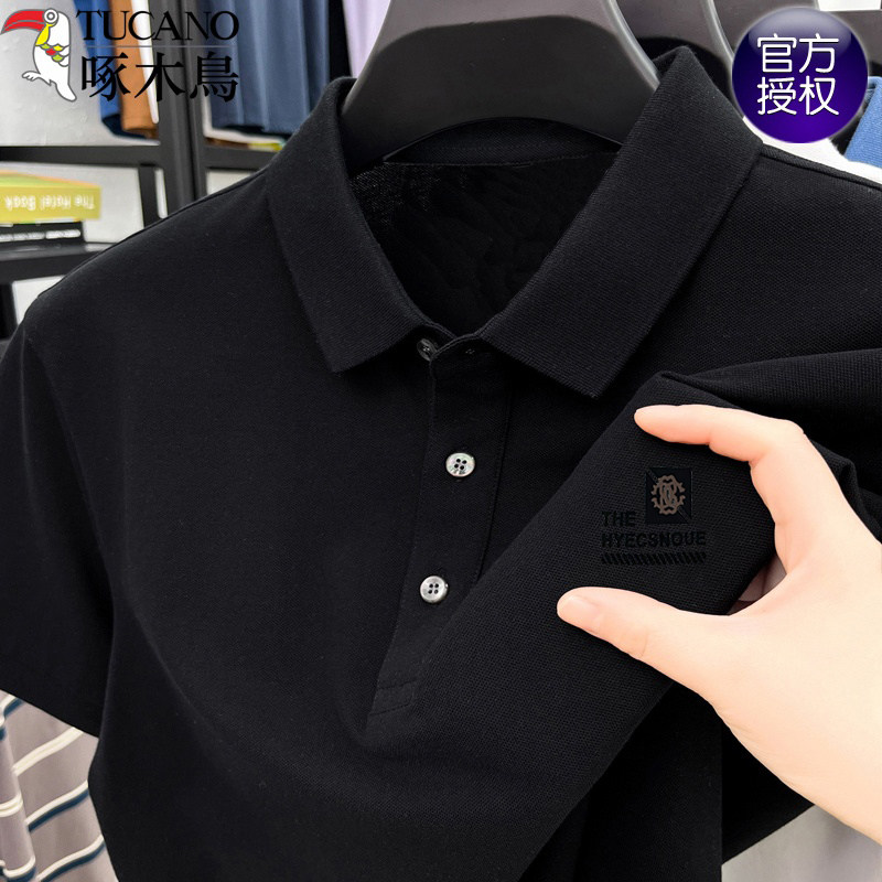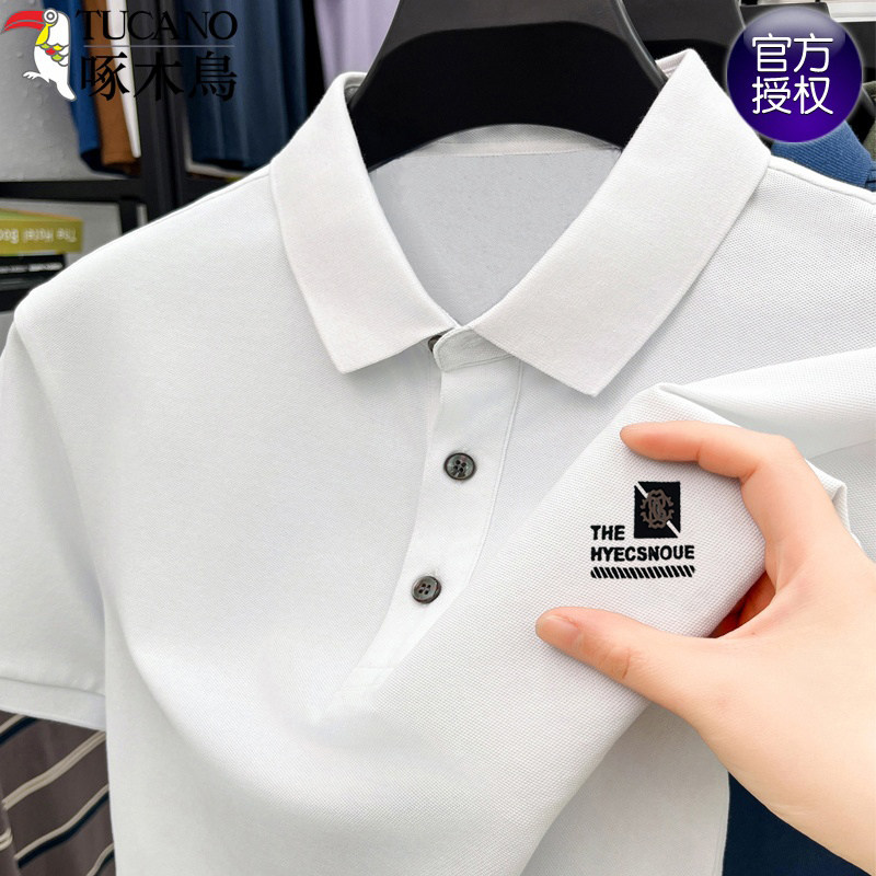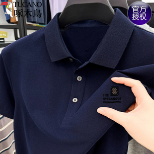 纯色宽松高端polo衫 新款 潮 t恤男翻领中年夏装 啄木鸟高档冰丝短袖