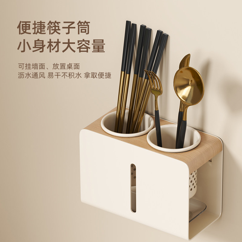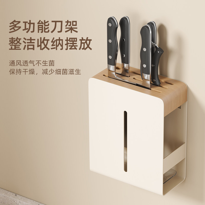 unaxi 调味料家用刀架奶白原木收纳架 Z02厨房置物架免打孔壁挂式