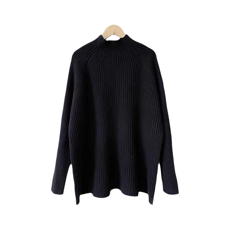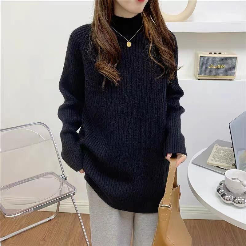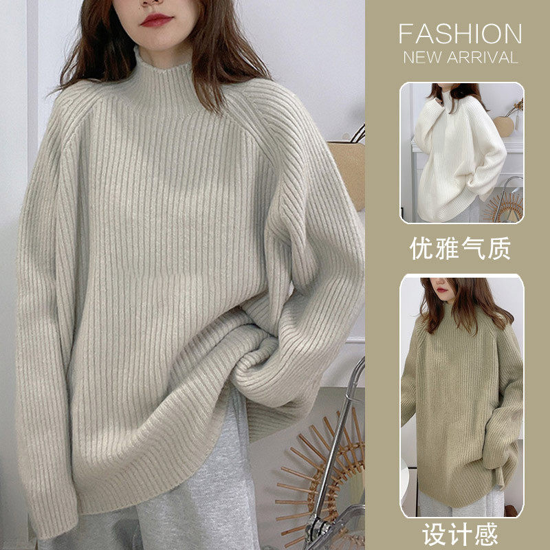 针织打底衫 品牌高级感羊毛衫 女半高领宽松毛衣秋冬加厚羊绒长袖