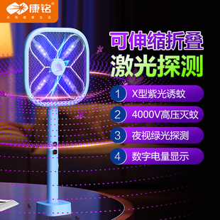 康铭电蚊拍充电式 超强力可伸缩折叠苍蝇灭蚊器二合一 家用2025新款