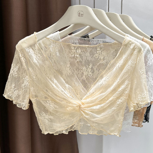 罩衫 防晒小坎肩扭结薄款 披肩夏季 外搭短款 外套 配吊带裙 蕾丝短袖