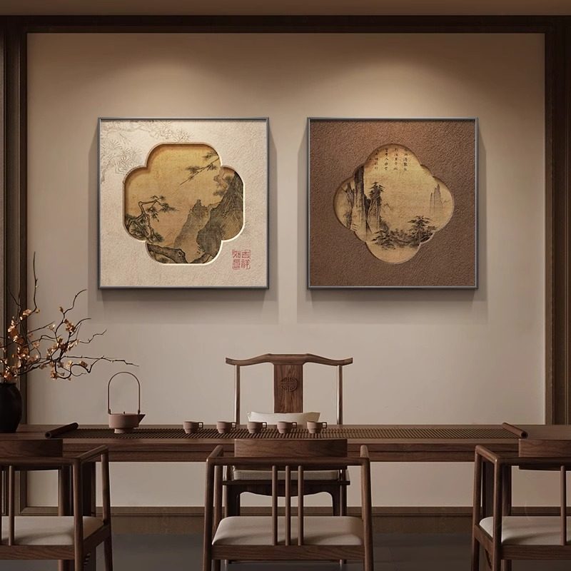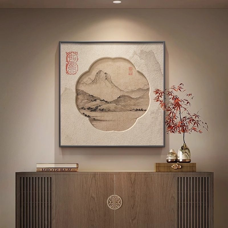 新中式 饰画宋代美学书房挂画禅意茶室过道墙壁画 水墨山水画玄关装