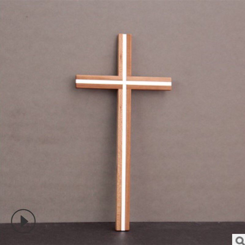 明心橡木木镶嵌镜片十字架33X16.5cm墙壁装 饰挂件工艺品