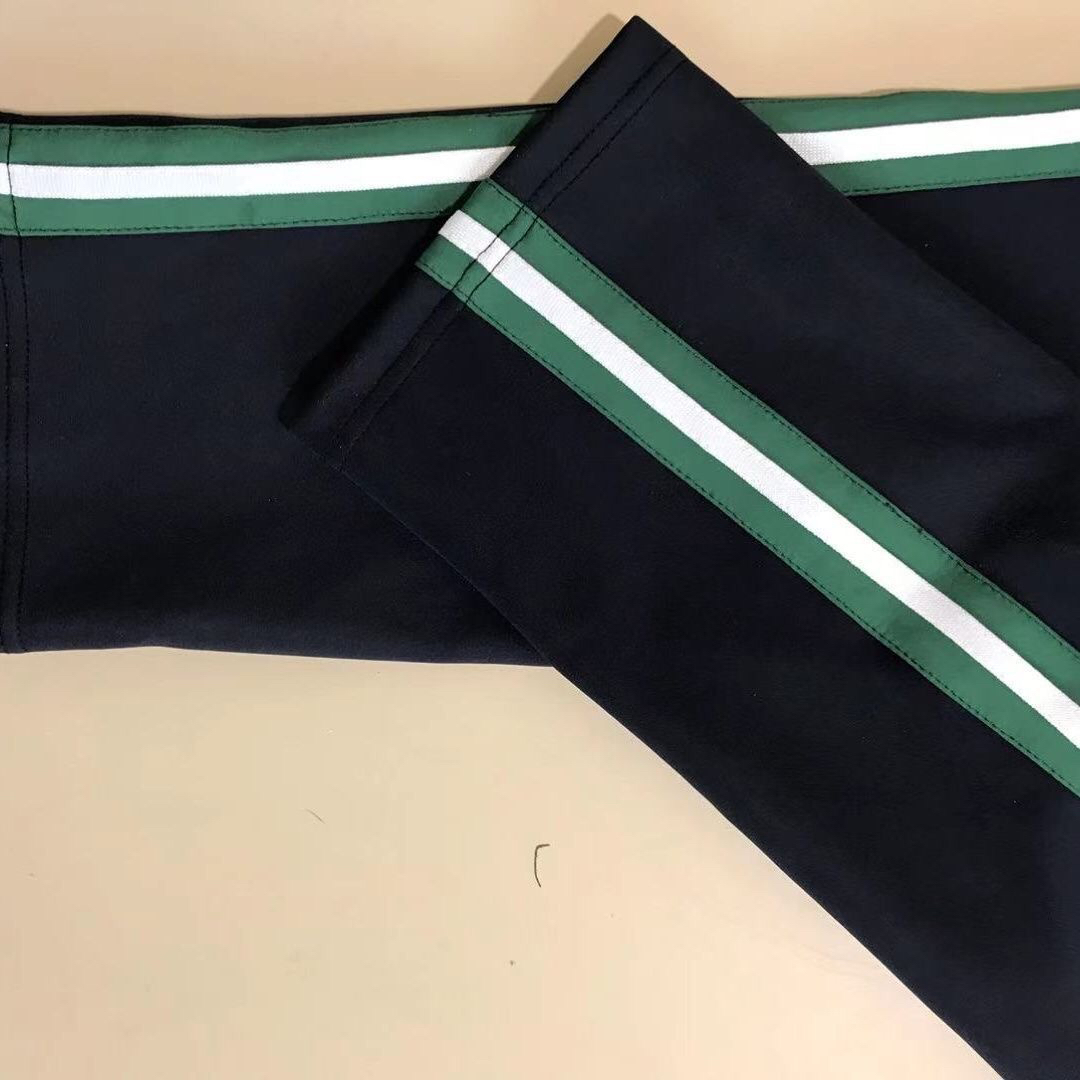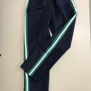 长裤 藏青色南韩丝春季 校服专用面料墨绿白杠直筒学生男女同款