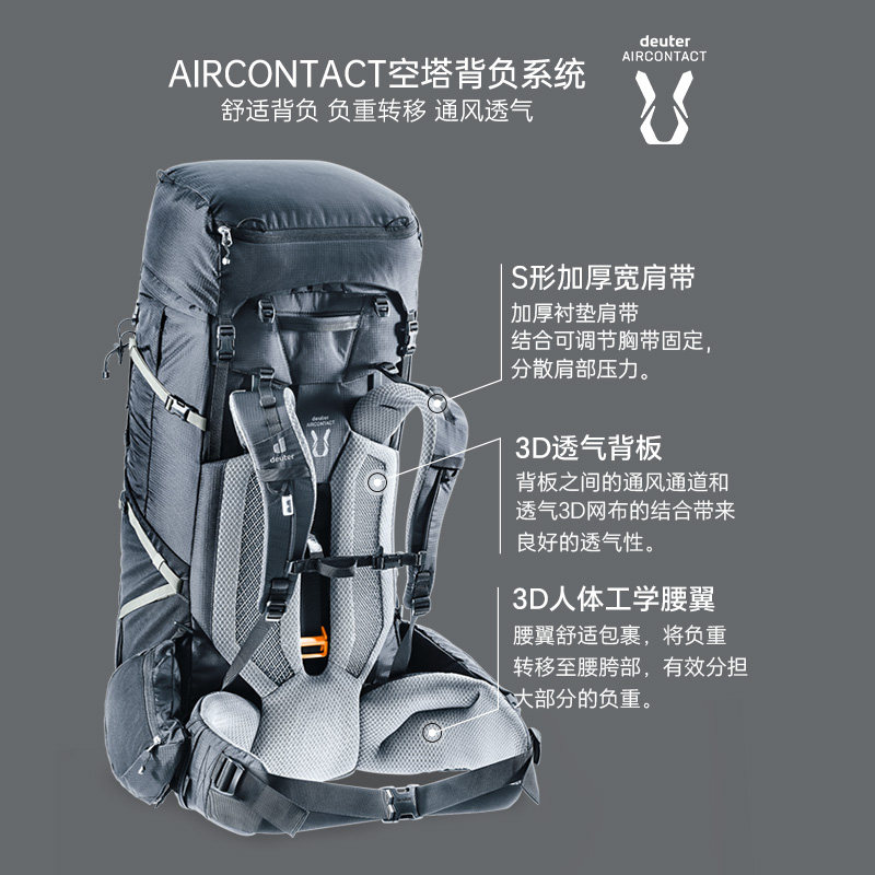 德国多特deuter长征Aircontact Pro可调节大容量男女登山包双肩包
