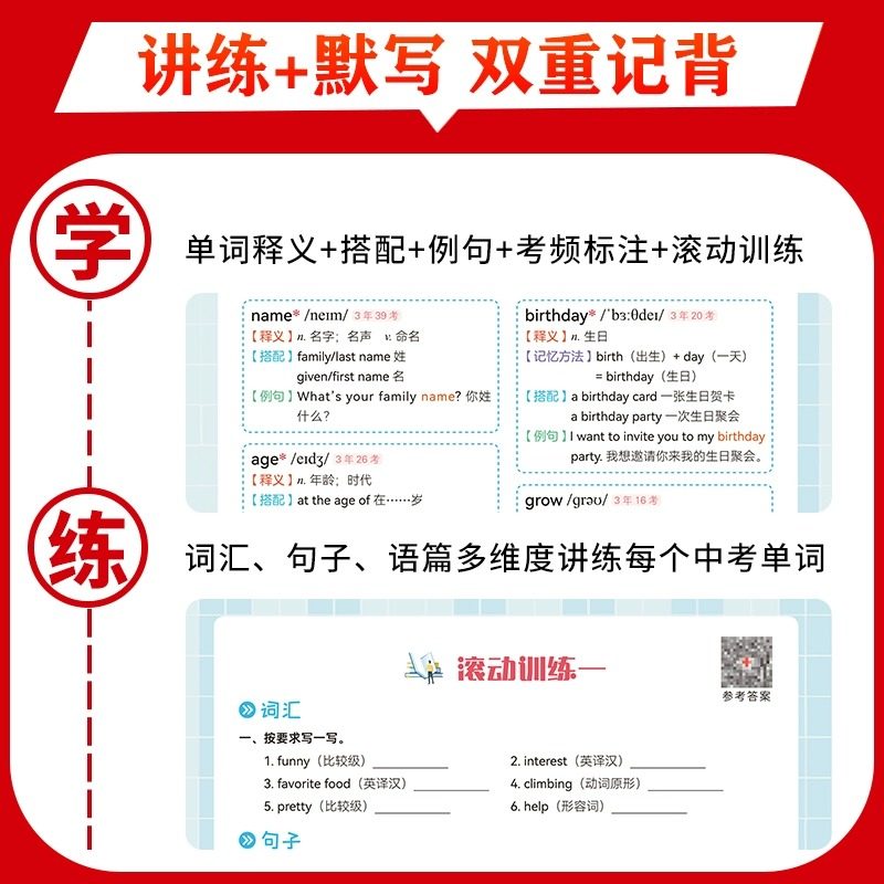 荣恒初中英语单词大全必背1600词中考英语必备词汇七八九年级英文高频单词记背神器默写本初一二三专项训练工具书知识点速记通用版