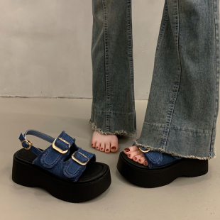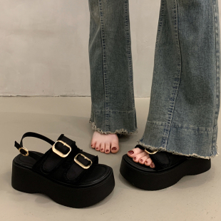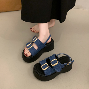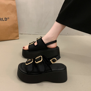 百搭坡跟罗马鞋 外穿高级感2026新款 女夏季 配裙子松糕厚底帆布凉鞋