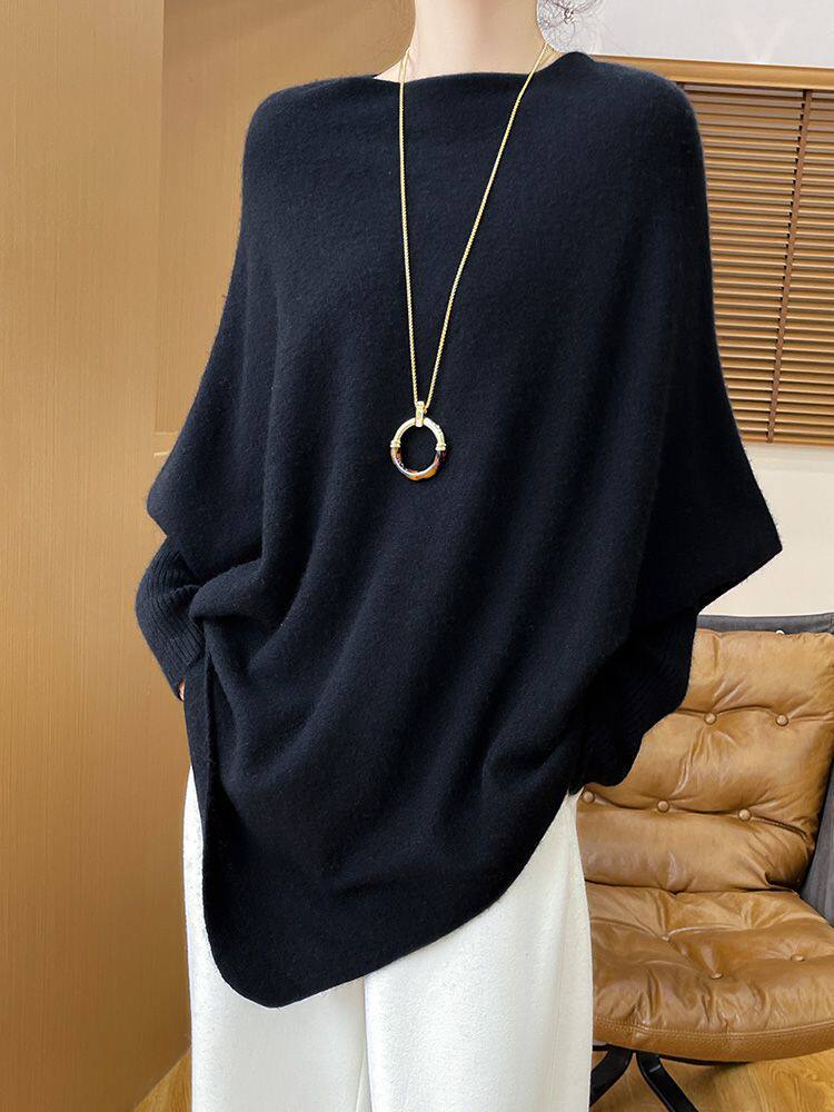 羊毛衫 慵懒风针织衫 不规则设计感蝙蝠袖 新款 女上衣 毛衣2025春秋装