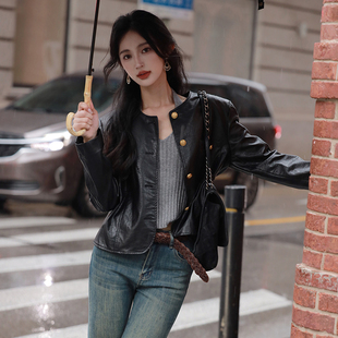 薄机车服 皮衣小香风黑金夹克通勤PU皮外套短款 AZure法式 复古修身