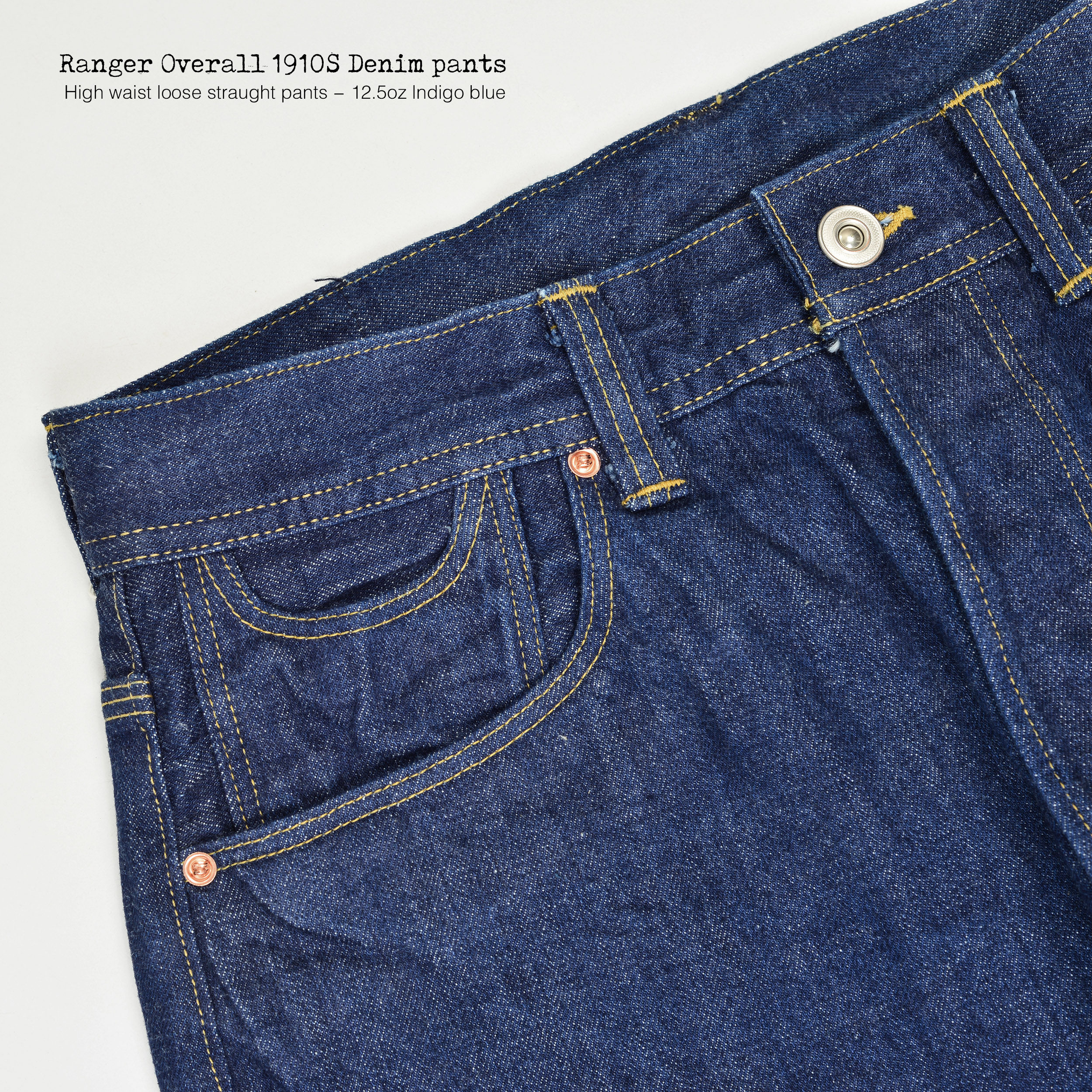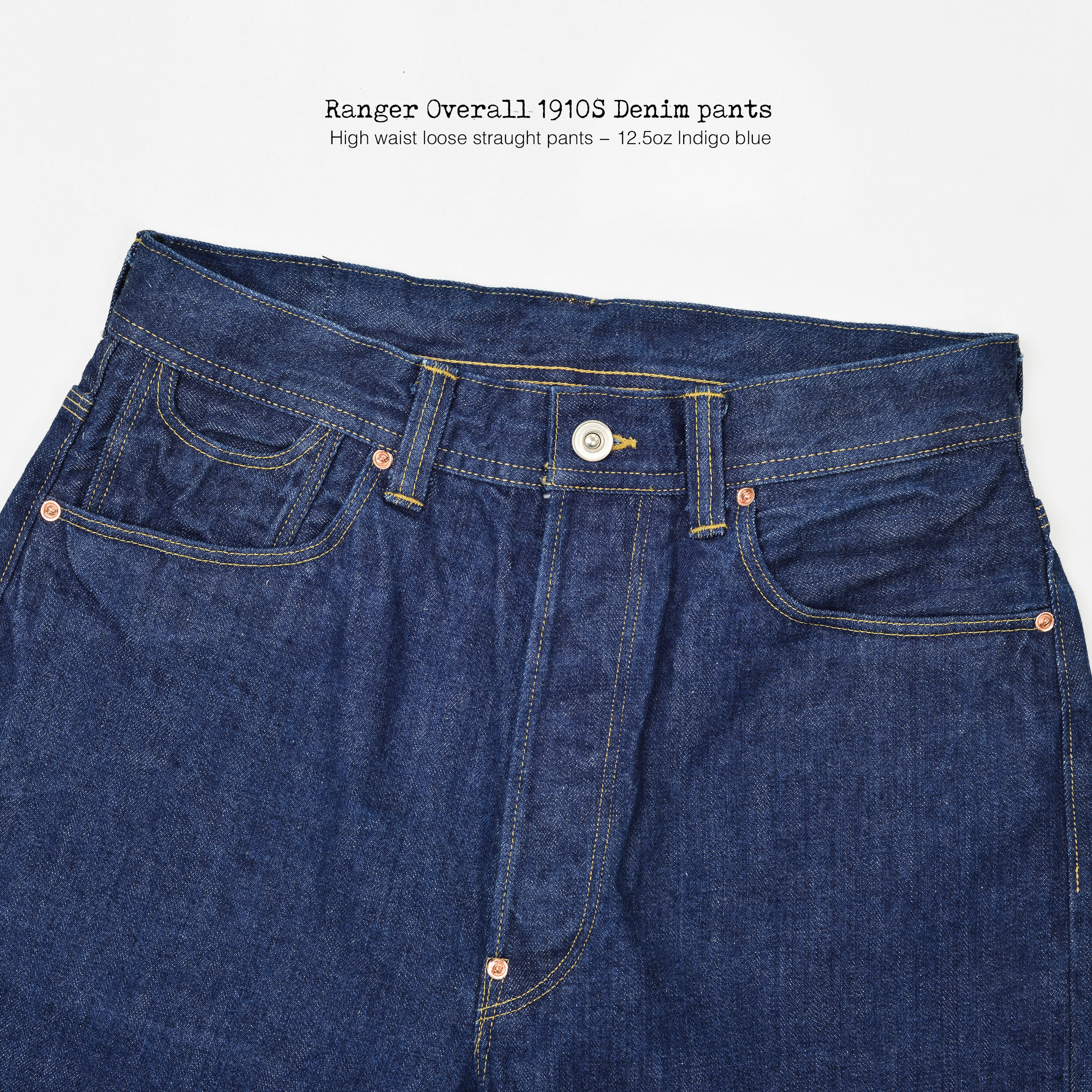Overall 赤耳丹宁原色牛仔裤 美式 高腰阔腿 复古1910S宽松 Ranger