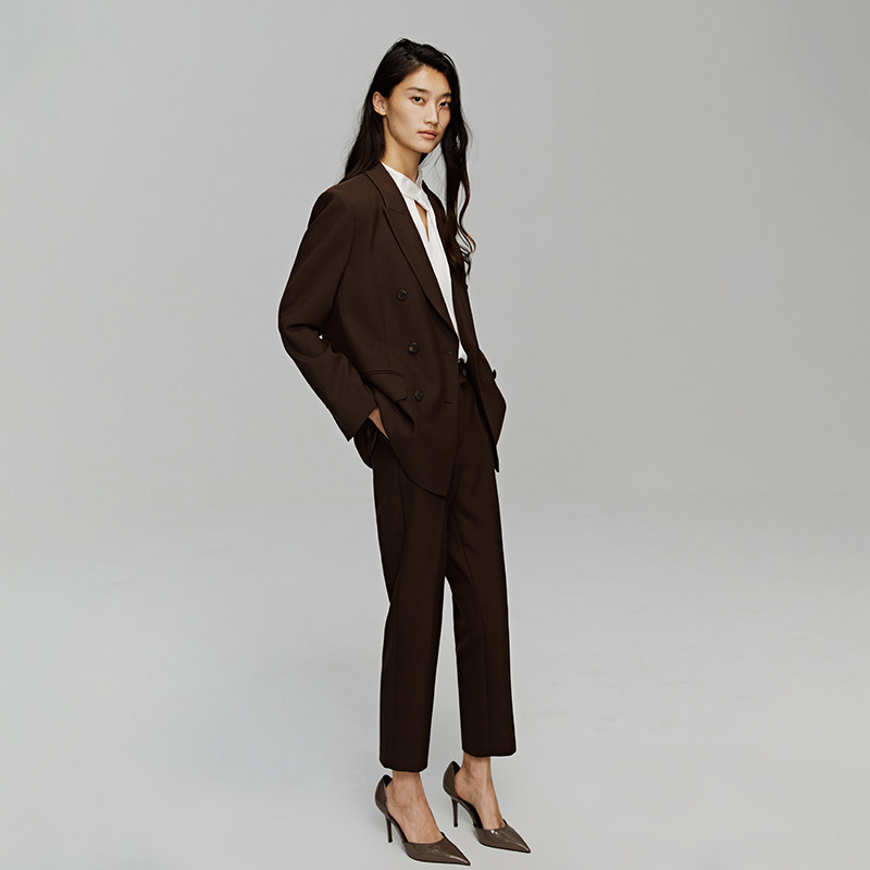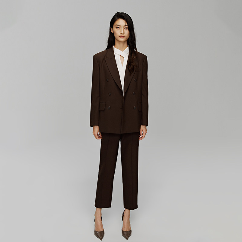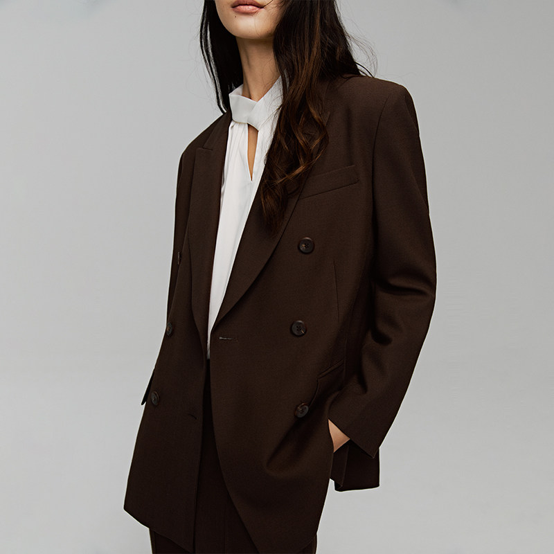 外套 复古简约双排扣羊毛西装 BLUE轻奢优雅女装